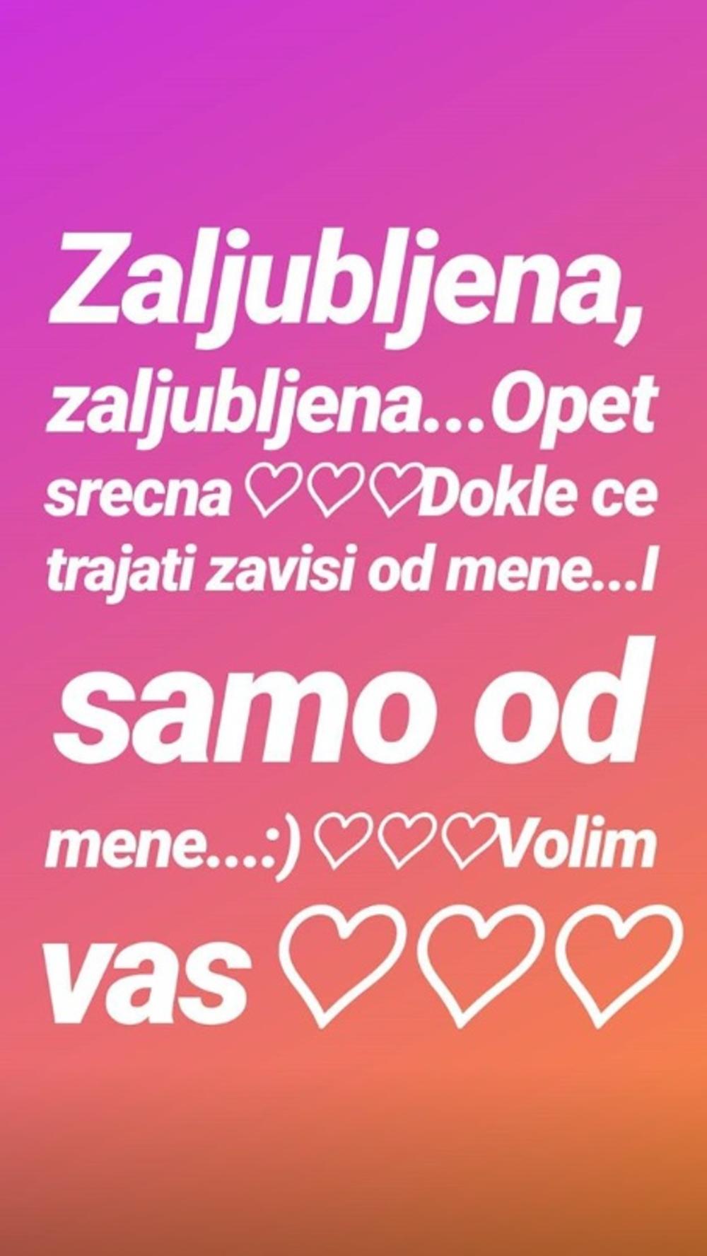 Ništa tu ne bi bilo čudno da nakon toga nije usledila još jedna objava. Naime, Miksi je sa svojim fanovima podelila jednu lepu vest. Zaljubila se! Kaže da je opet srećna i da samo od nje zavisi koliko će ta sreća trajati. Mi joj želimo da ovog puta potraje, a da li je slučajnost što je to objavila odmah nakon videa sa ovim simpatičnim mladićem, ostaje nam da saznamo.