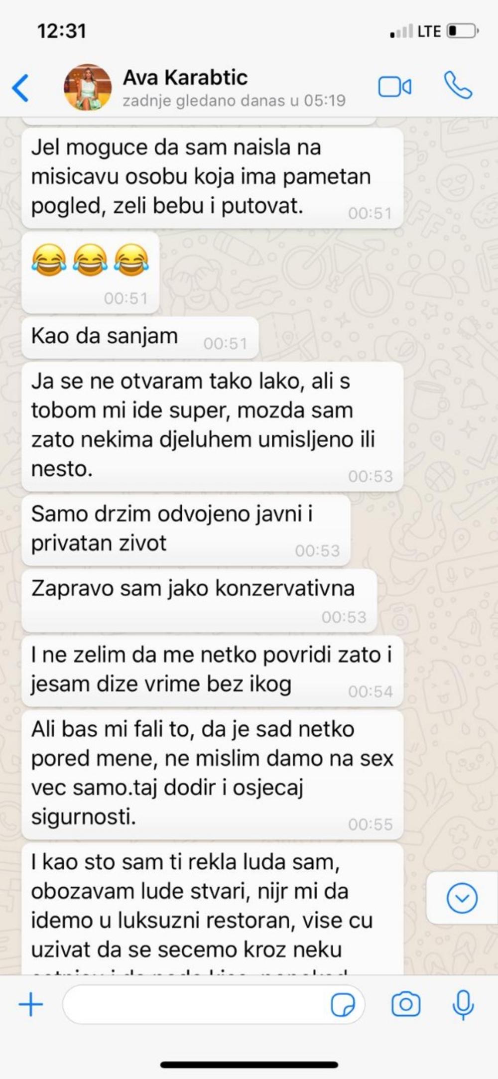 Čim je čula da je Suki neko ko ima novca i da je omiljen kod žena jer ne žali pare, u akciju se bacila Ava karabatić koja je počela da mu šalje poruke non stop. Mi smo dobili prepisku Sukija i Ave od jednog Sukijevog prijatelja koji je u momentu Sukijeve nepažnje napravio ove skrinšotove i dao nam.