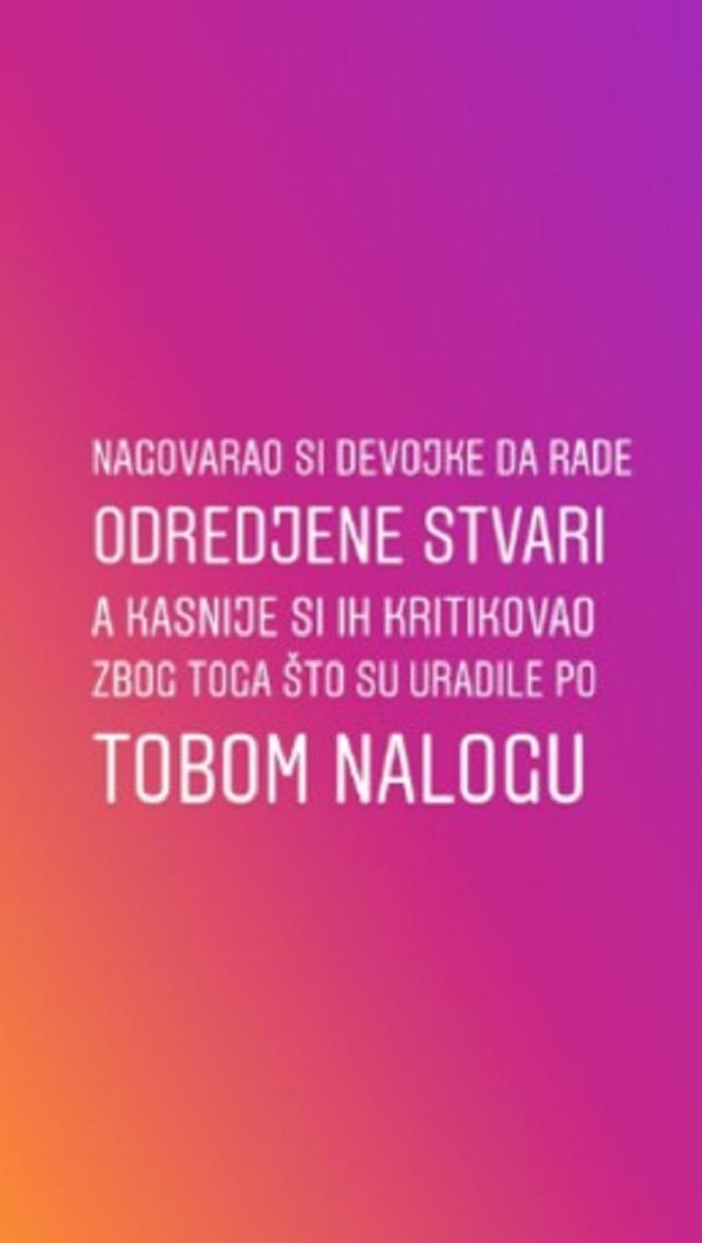 "Nagovarao si devojke da rade određene stvari, a kasnije si ih kritikovao zbog toga što su radile po tvom nalogu. Mićina prljava igra", zaključila je.