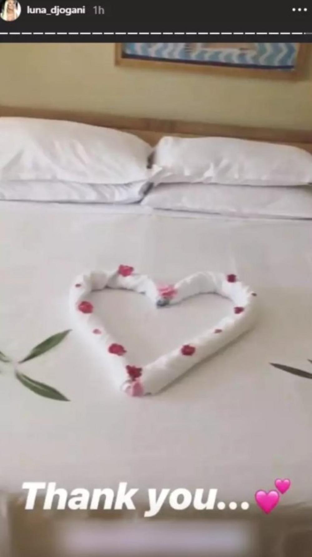 Ubrzo nakon toga golupčići su se vratili u svoju sobu, gde ih je dočekalo iznenađenje od ljubaznog osoblja hotela u kojem borave - srce na njihovom krevetu napravljeno od peškira i cveće po njemu.