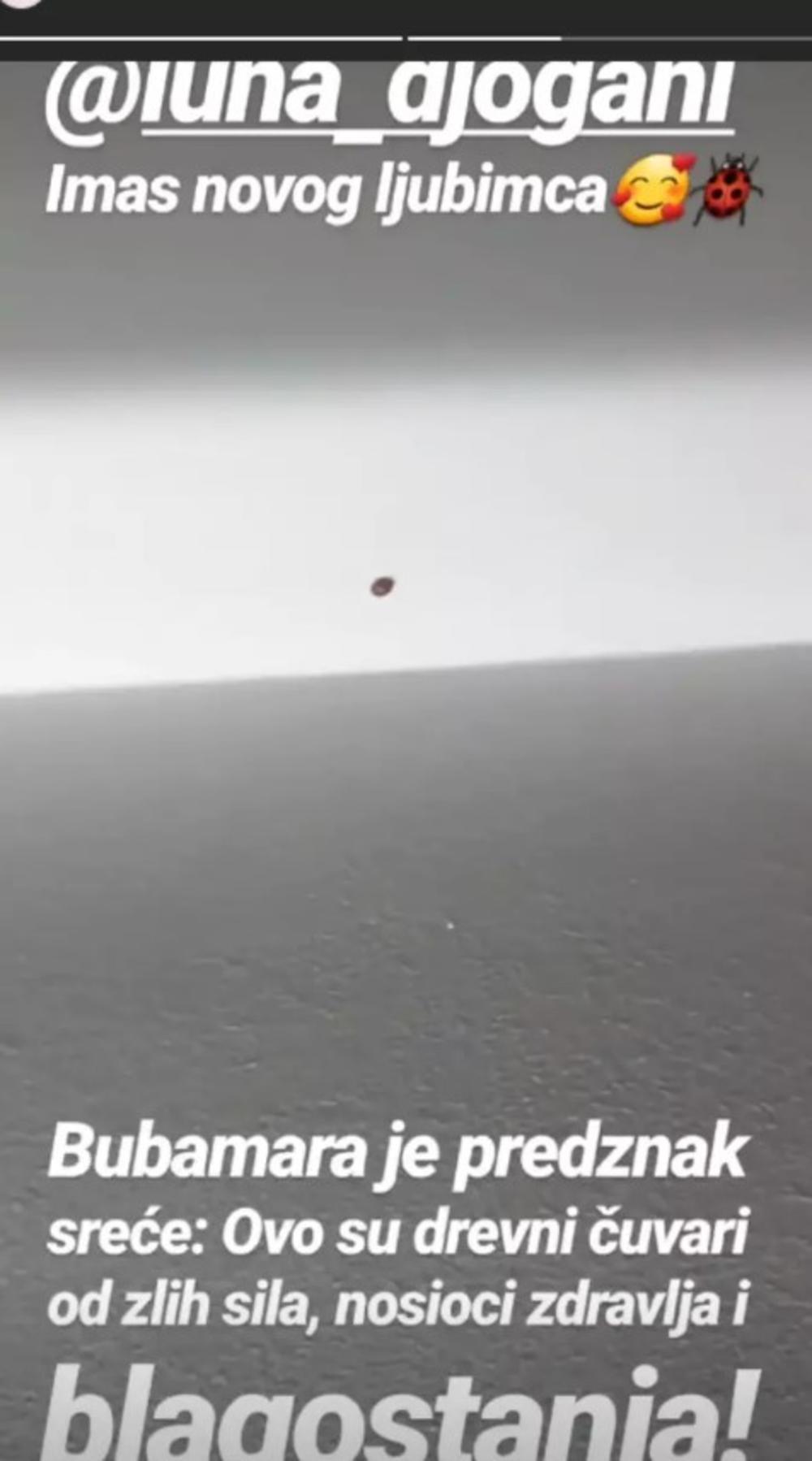 "Luna Đogani, imaš novog ljubimca. Bubamara je predznak sreće. Ovo su drevni čuvari od zlih sila, nosioci zdravlja i blagostanja", napisala je pevačica.