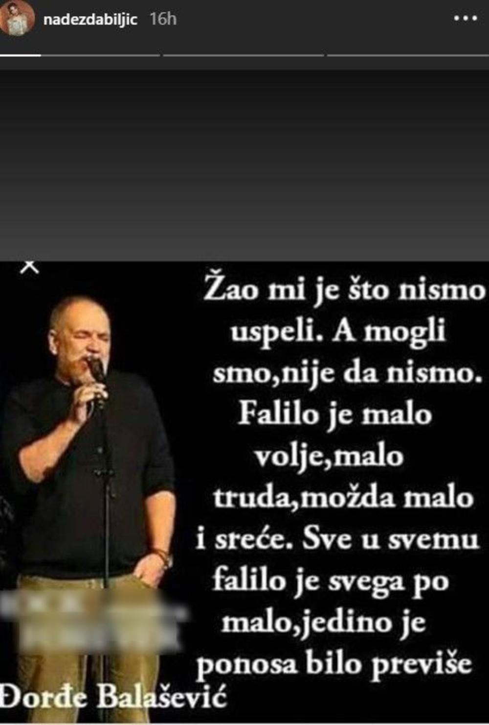Nadežda Biljić se oglasila putem društvenih mreža, a ona je objavila reči ljubavne pesme koje govore o propaloj ljubavi.