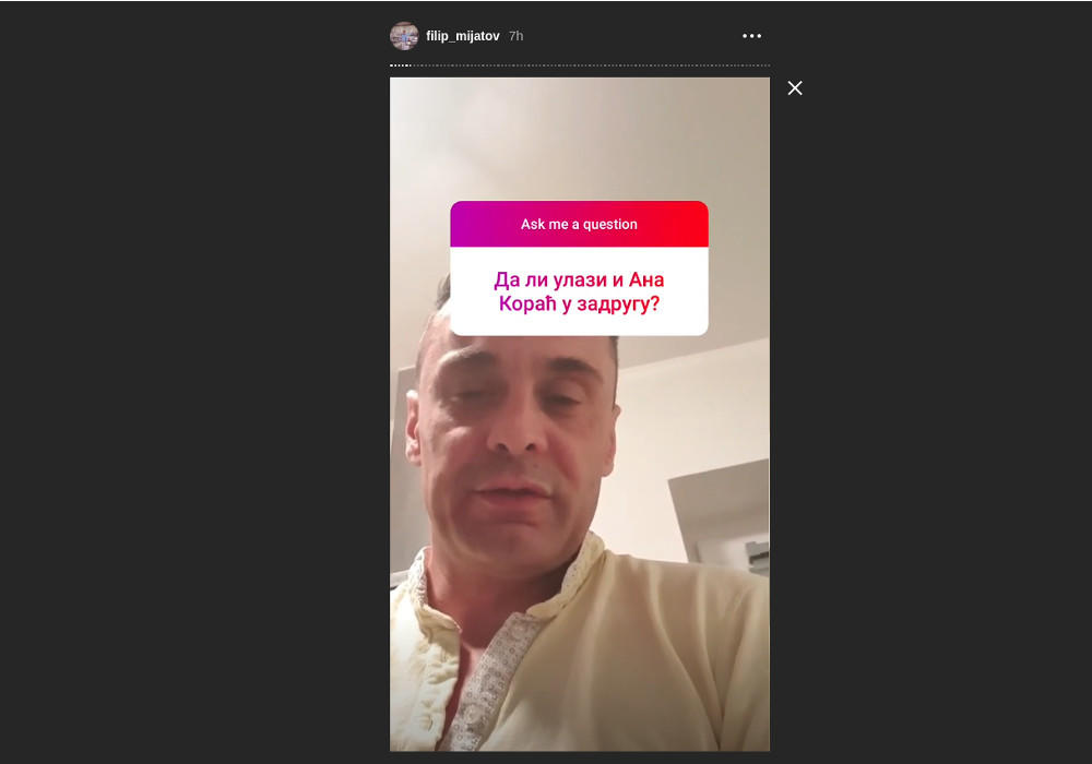 Mijatov se oglasio na svom Instagram profilu, gde je odgovarao na mnogobrojna pitanja svojih pratioca i fanova Zadruge. Kao što je bilo i očekivano mnogi su ga pitali da li će Ana ući u Belu kuću. Odgovorio je da će Koraćeva ući u Imaginarijum, ali tek za mesec dana, nakon što on otkrije šta sve zna o njoj i "zavrti priču".