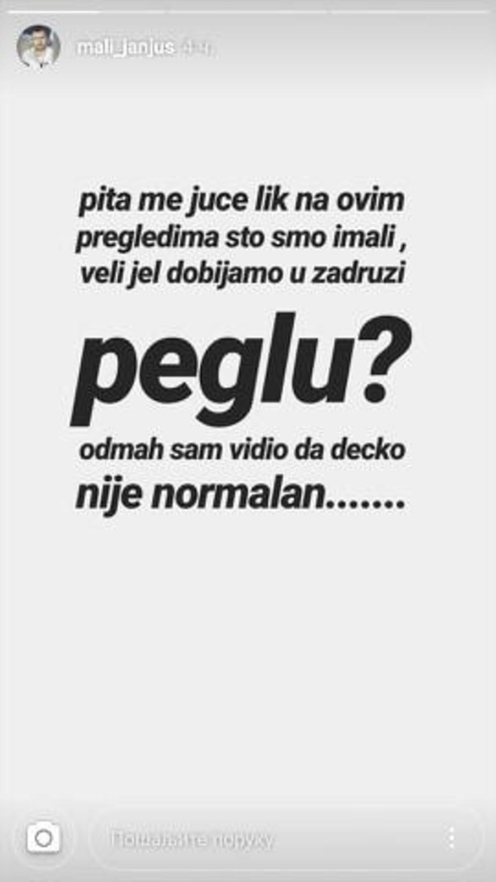 On je na svom storiju podelio priču sa lekarskog pregleda, gde je jedan od budućih učesnika tražio od produkcije peglu, što je mnoge ostavilo bez reči. Janjuš je, razume se, u svom stilu iskomentarisao ovaj čudan zahtev!