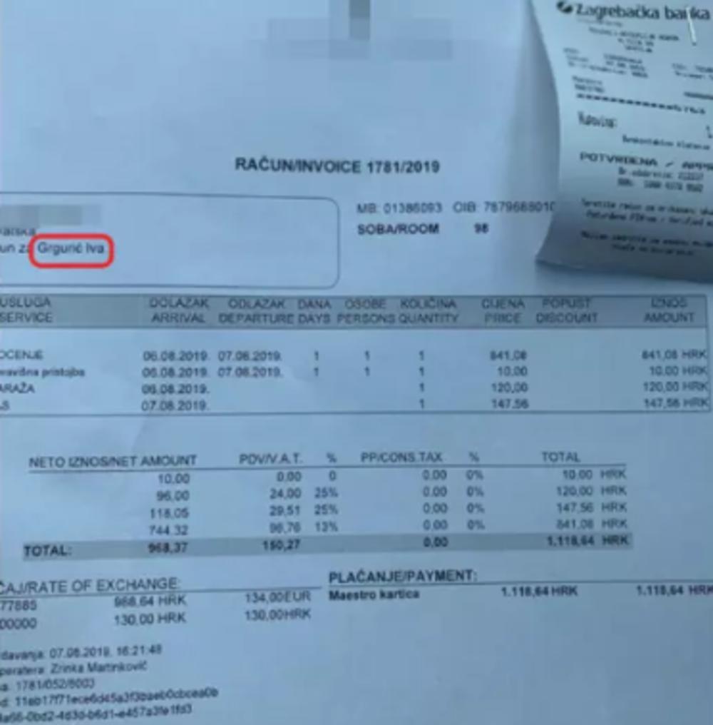 - Kada je shvatila da joj neću dati pare, priča se promenila potpuno – počela je da mi preti, govoriti da će mi zvati devojku, da će mi se „u*rati u život“, bio sam u šoku! Ignorisao sam njene pozive, da bi me oko 14 sati i zvali iz hotela (ime poznato redakciji) da mi kažu da je gošća Iva Grgurić pobegla iz hotela ne plativši, a kad su je kontaktirali telefonom dala je moje ime i broj i rekla da ću to platiti ja. Od sramote sam skoro umro! Poslao sam odmah prijatelja da izmiri račun. Usledili su pozivi sa sakrivenih brojeva, pretnje da se novac mora dati inače će mi napraviti pakao od života i slično. Trajalo je to desetak dana i onda je prestalo pred njen ulazak u „Zadrugu“ - ispričao je Suki, koji je priložio račun koji je njegov prijatelj platio za Ivu.