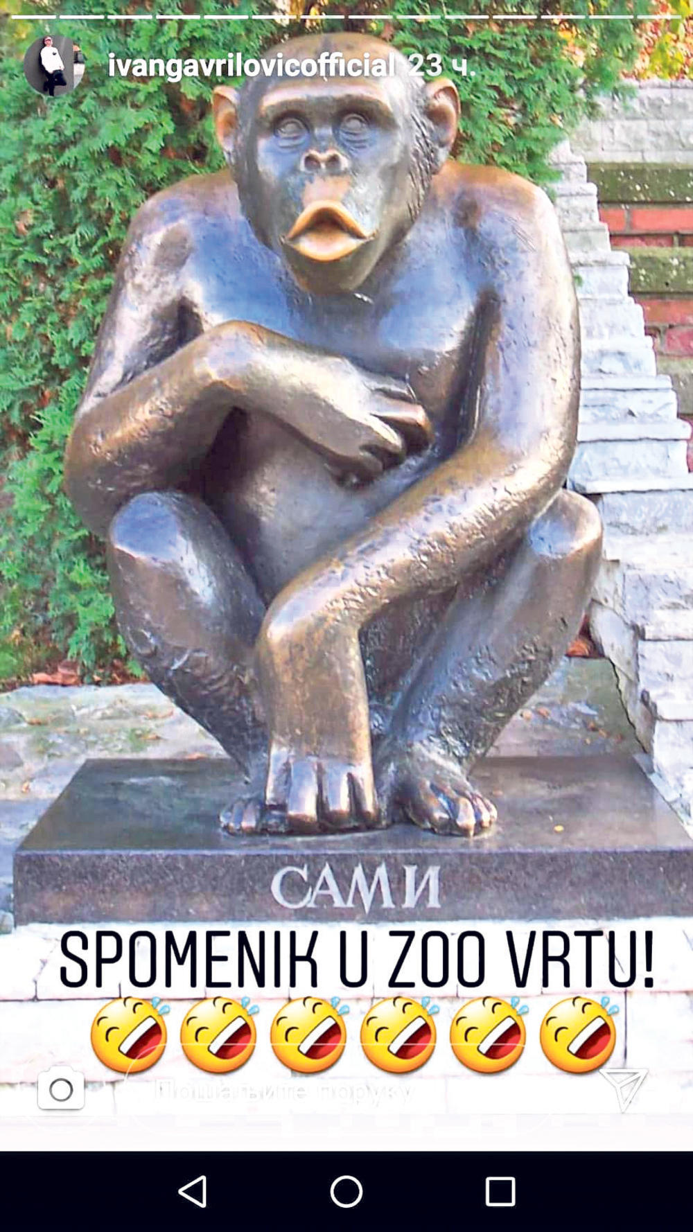 Posle žestoke rasprave između Ivana i Sanija u "Zadruzi", kao i uvreda na nacionalnoj osnovi, dugogodišnji prijatelji su ipak prevazišli sukob i pomirili se. Tome je doprineo Natalijin ulazak u rijaliti, pa su natenane sve troje rekli šta misle i na kraju izgladili odnose. Međutim, to Gavriloviću ne predstavlja problem da nastavi s provokacijama na Sanijev račun. Nedavno je na Instagramu objavio fotografiju na kojoj je spomenik majmunu Samiju u beogradskom zoološkom vrtu, a kao objašnjenje za taj postupak rekao nam je: