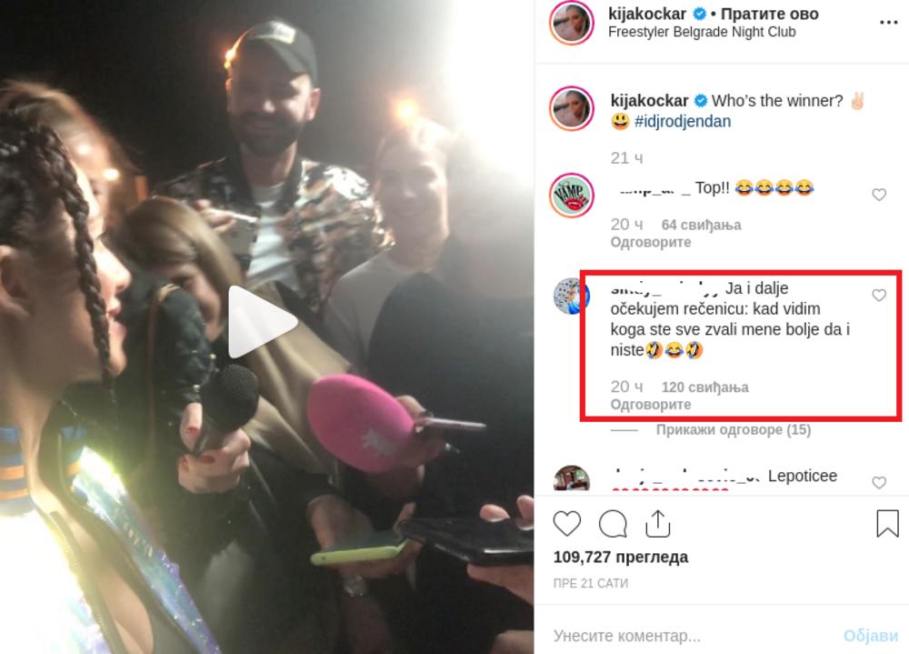 Ona je jednom pratiocu na Instagramu odgovorila na komentar koji joj je ostavio uz fotografiju sa žurke, a kako je navela, "na pomenutom događaju svako je bio postavljen na svoje mesto".