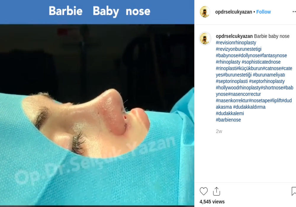 Na fotograiji ispod je devojka koja je uradila isto "Barbi" nos kod istog doktora, koji je to objavio na Instagramu, pa procenite, da li je baš ovo Koraćeva.