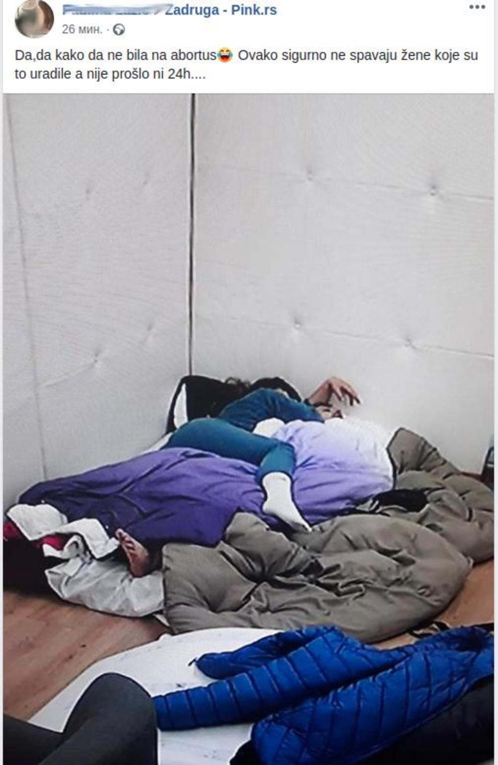 - Da, da, kako da ne, bila na abortusu! Ovako sigurno ne spavaju žene koje su to uradile, a nije prošlo ni 24 časa - glasi jedan od komentara, uz printskrin iz rehabilitacije, gde Miljana boravi sa Zolom.