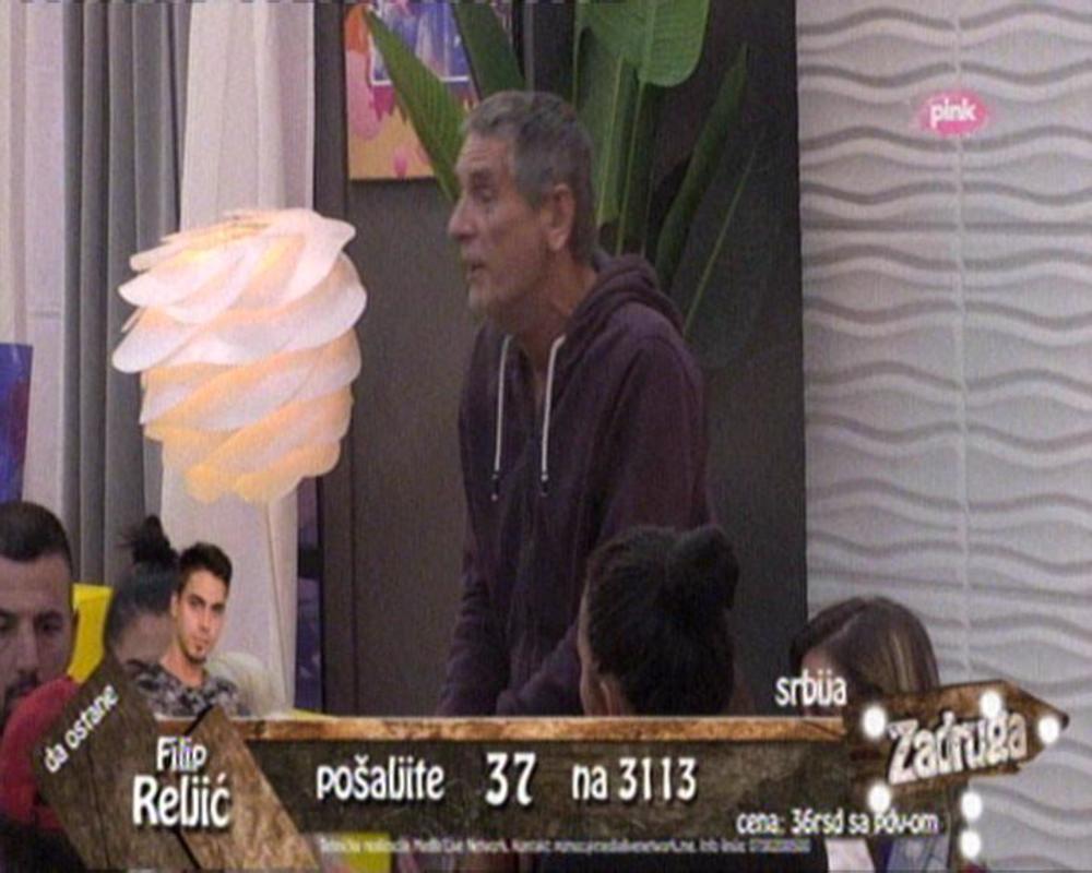 Dok je Tomović vikao na zadrugare, sve vreme je udarao šakom o sto kao da udara nekog, pa je tako zakačio i flašu, koja je poletela.