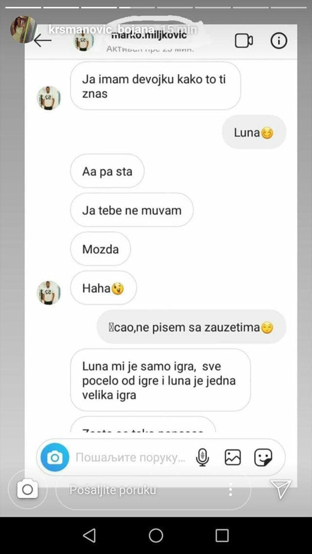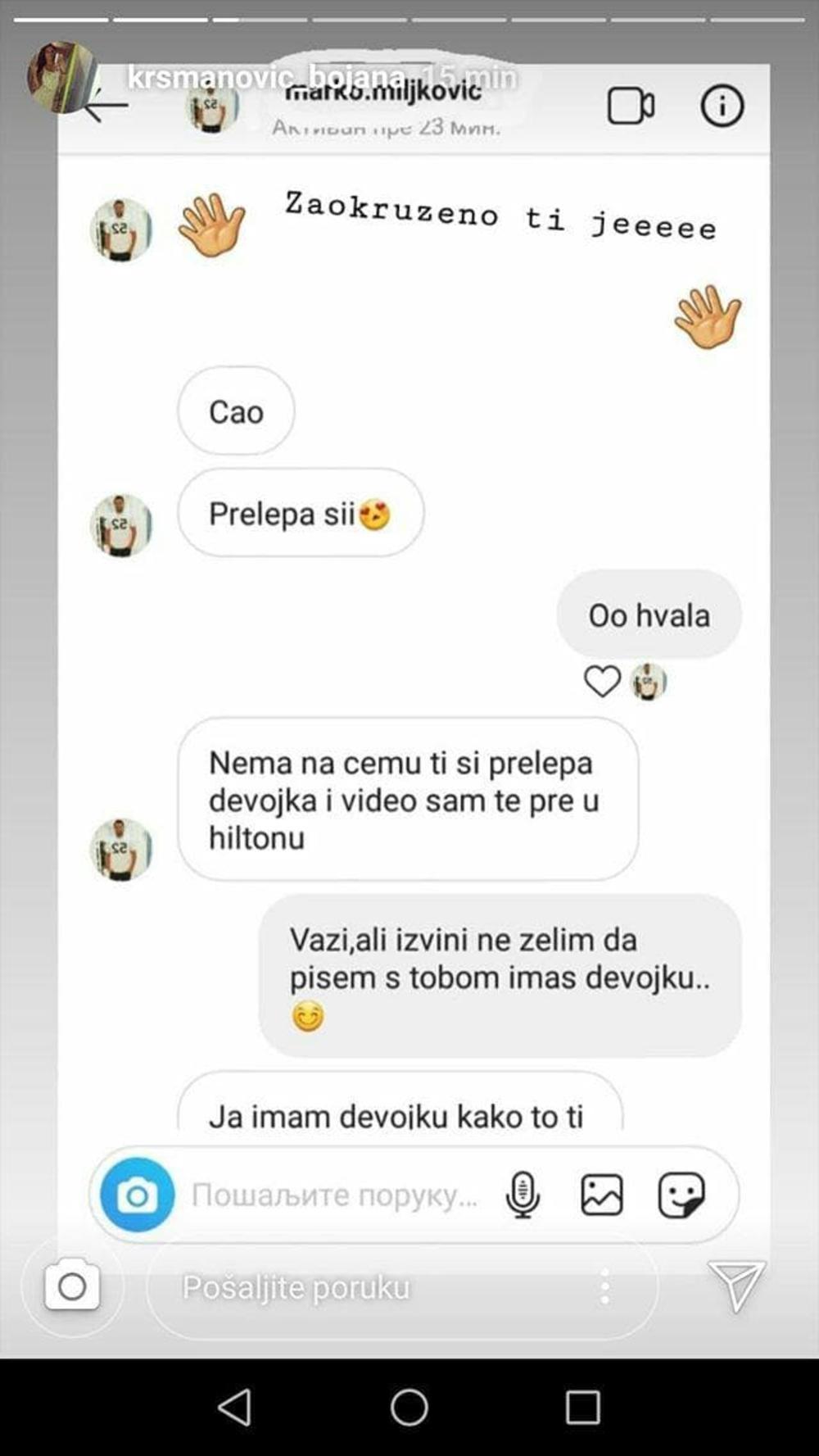 Na društvenim mrežama osvanula je navodna prepiska između Marka Miljkovića i manekenke Bojane Krsmanović.