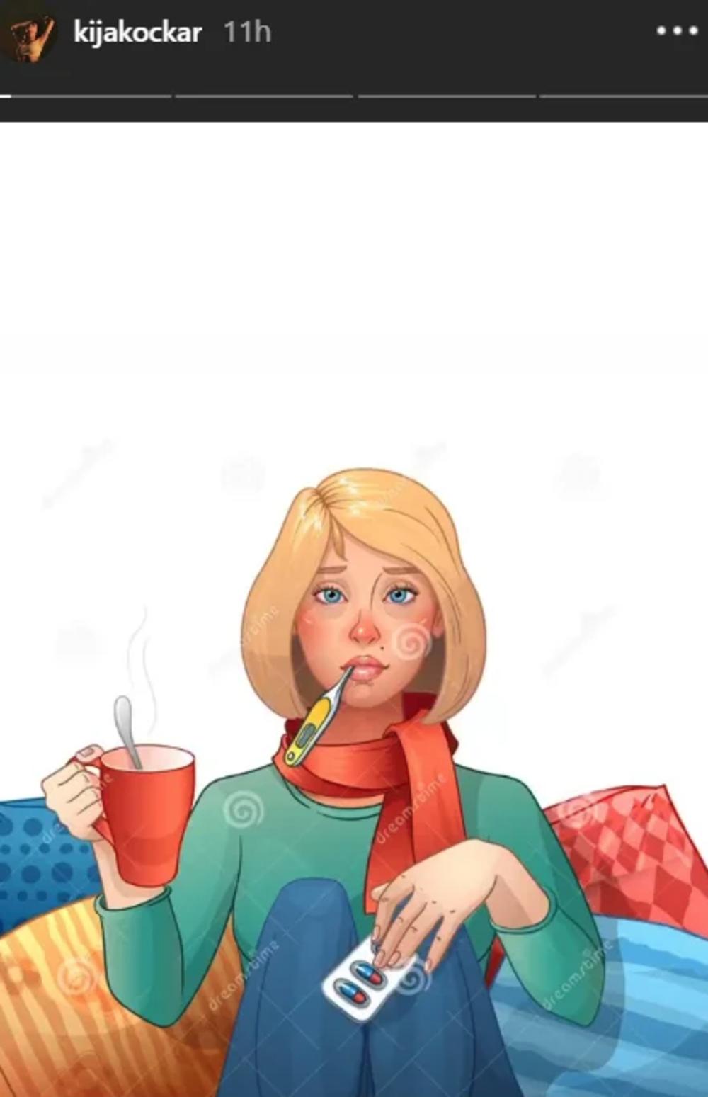 Kako ne želi mnogo da drami, Kija je samo u vidu crteža. Devojke u ustima drži toplomer, a u rukama čaj i lekove, što je u prevodu poruka da neće biti dobro neki period, te se zato neće pojavljivati u javnosti.