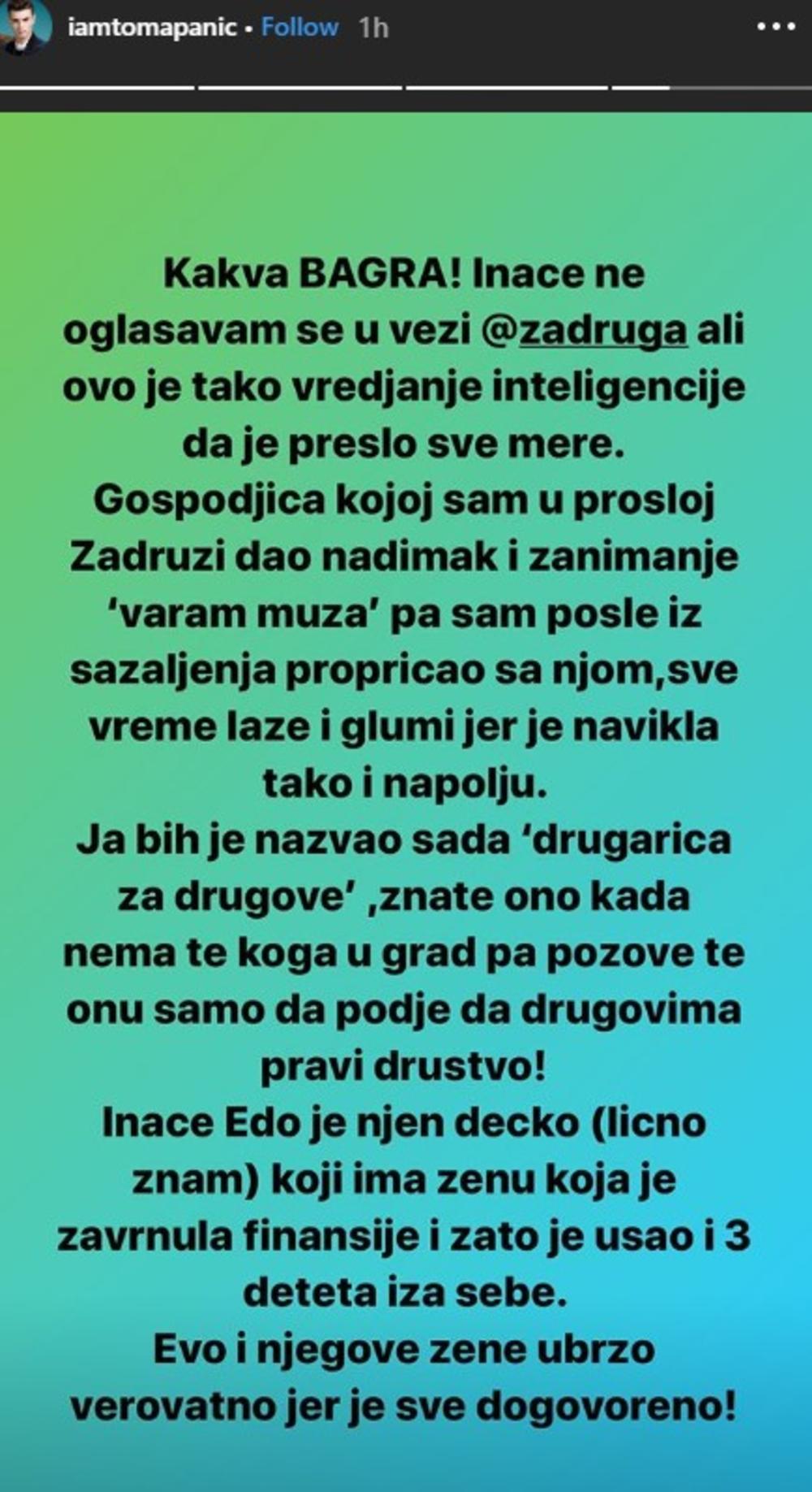 Ipak, Toma Panić se oglasio na društvenim mrežama i priznao da zna mnogo više stvari o Edisu i Dragani.