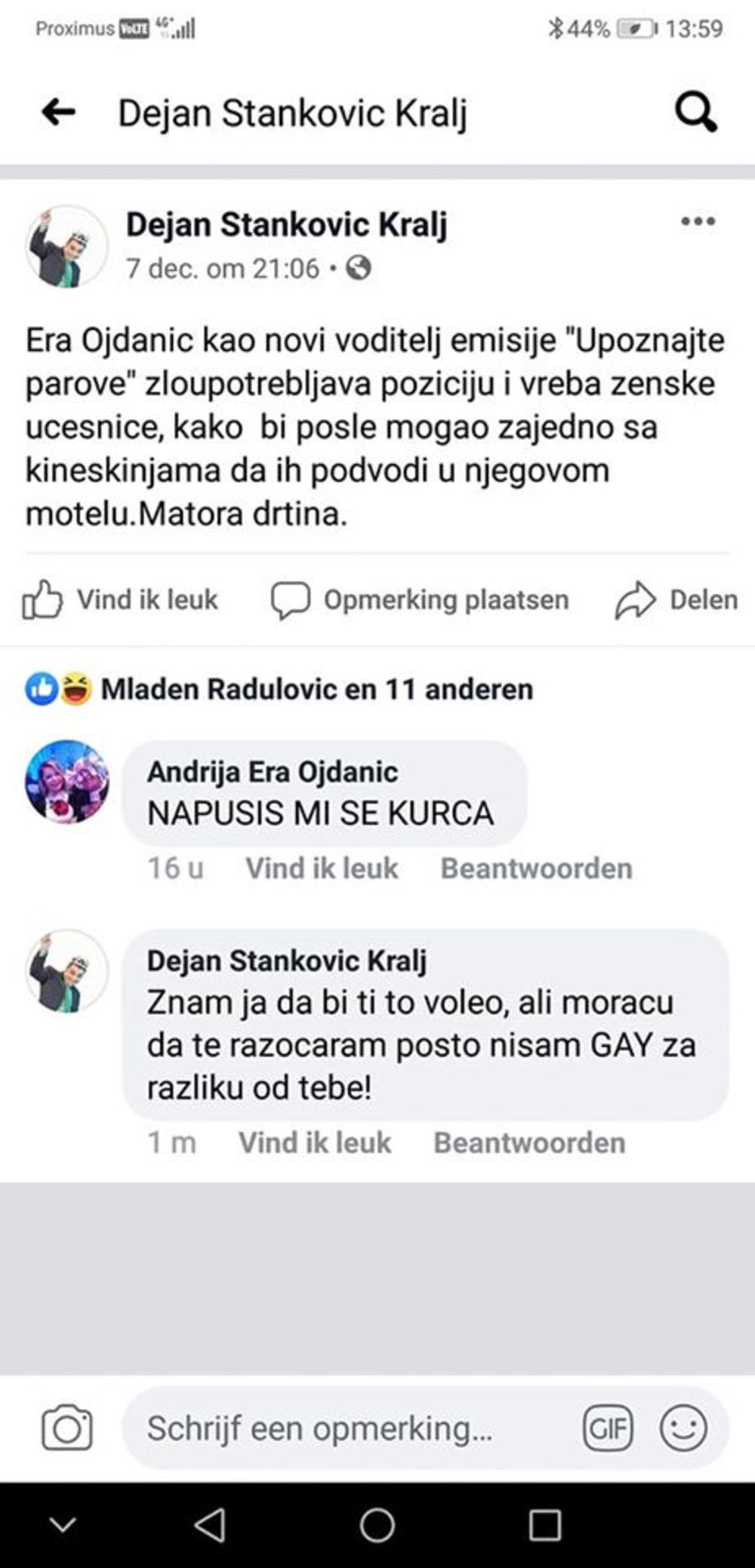 – Nap**iš mi se ku**a! - poručio mu je Era. – Znam ja da bi ti to voleo, ali moraću da te razočaram pošto nisam GAY za razliku od tebe! - odgovorio mu je Stanković.