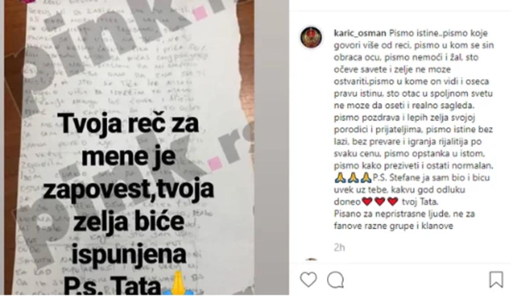 Osman je nakon toga i izbacio sliku svoga sina i njegove bivše devojke, pokojne misice Dijane Milojković, uz poruku koja je direktno udarila na Stefanovu vezu sa Ivom Grgurić, koju je Osman donedavno podržavao.