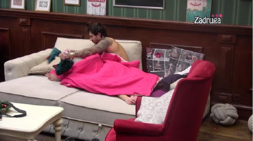 Nataša Radan i Filip Đukić su se tokom ranih jutarnjih sati prepustili strastima. Kako ih je "opila" strast, njih dvoje su odložili svoju garderobu sa strane, te su goli zaspali.