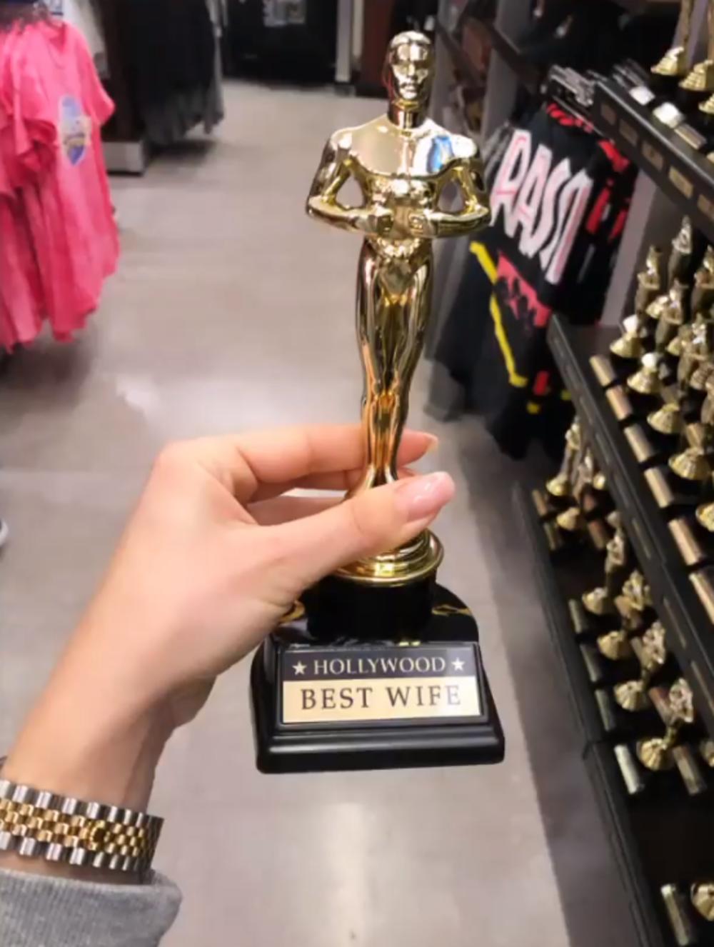 Da, ipak, nikad ne propusti priliku da “pecne” bivšeg supruga Slobu Radanovića, pokazala je i kada se fotografisala sa statuom Oskara koji je namenjen “najboljoj supruzi”.