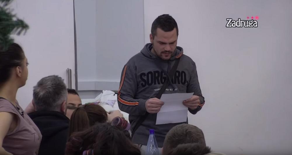 "Zadrugari, doneli smo odluku da zbog spavanja u nedozvoljeno vreme nedeljnim honorarom kaznimo: Zolu, Eda, Draganu, Ivanu Šopić, Erminu, Boru, Natašu, Minu, Nikolu Orozovića, Milicu Kemez, Mirka Gavrića, Jelenu Pešić, Ivanu Krunić i Baneta", stajalo je u pismu Velikog šefa.