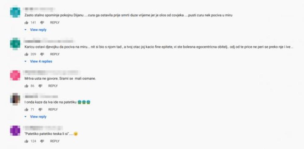 - Mrtva usta ne govore, srami se mali Osmane; Patetiko, patetiko, teška li si; Kariću, ostavi devojku da počiva u miru, Zašto stalno pominje pokojnu Dijanu - bili su neki od komentara ispod snimka: