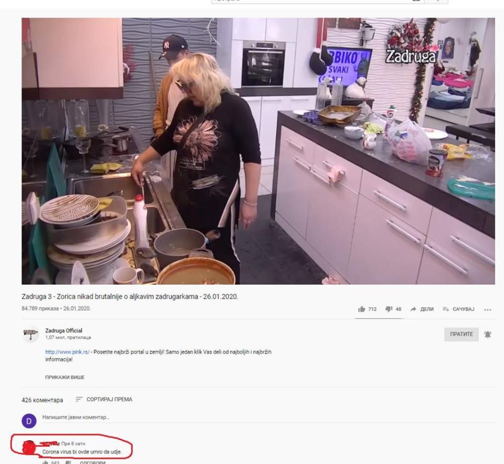 – Korona virus bi ovde umro da uđe - jedan je od komentara na "Youtube" na račun prljavštine u "Zadruzi".
