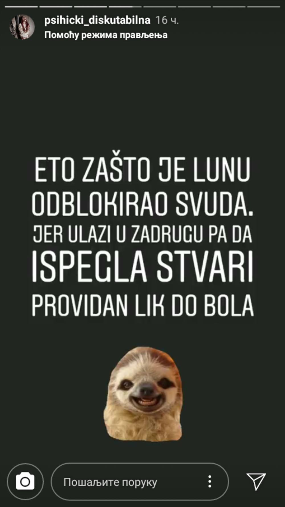 Jedna od Luninih fan stranica tvrdi da je Miljković odblokirao Lunu tik pred ulazak u rijaliti samo kako bi "ispeglao" stvari.