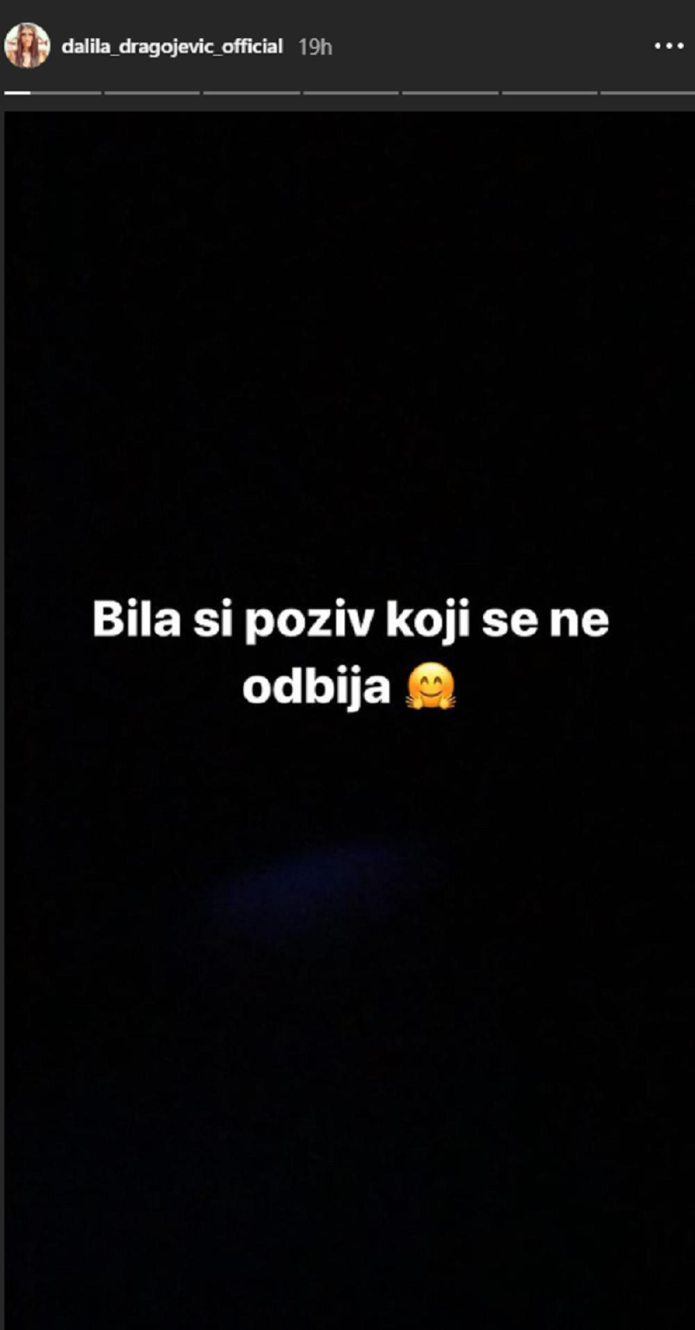 - Bila si poziv, koji se ne odbija - napoisala je Dragojevićka na svom prvom storiju, pa se može protumačiti na više načina, a jedan od njih je da ju je nazvala i Velika šefica, kako bi se diskvalifikovani bračni par vratio na "mesto zločina".