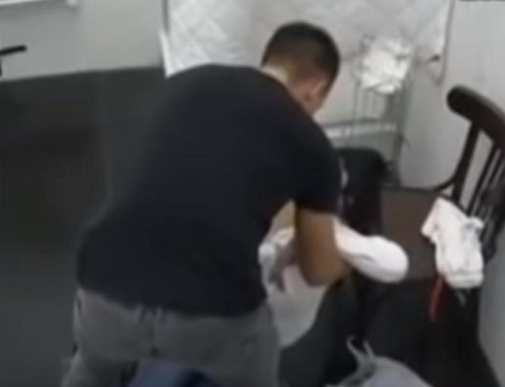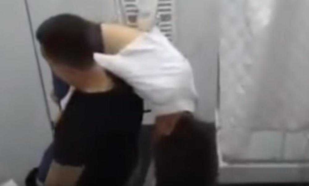 Video pokazuje kako Simova pada u nesvest, pa je Matijević podiže i nosi u tuš-kabinu, gde je poliva vodom.