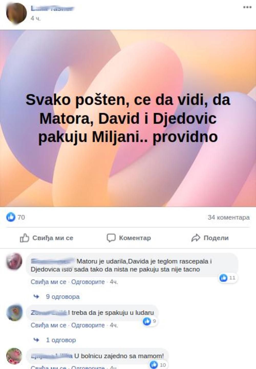 - Svako pošten će da vidi, da Matora, David i Đedović pakuju Miljani... providno - jedan je od komentara u grupama na društvenoj mreži Fejsbuk, u kojoj se okupljaju gledaoci "Zadruge".