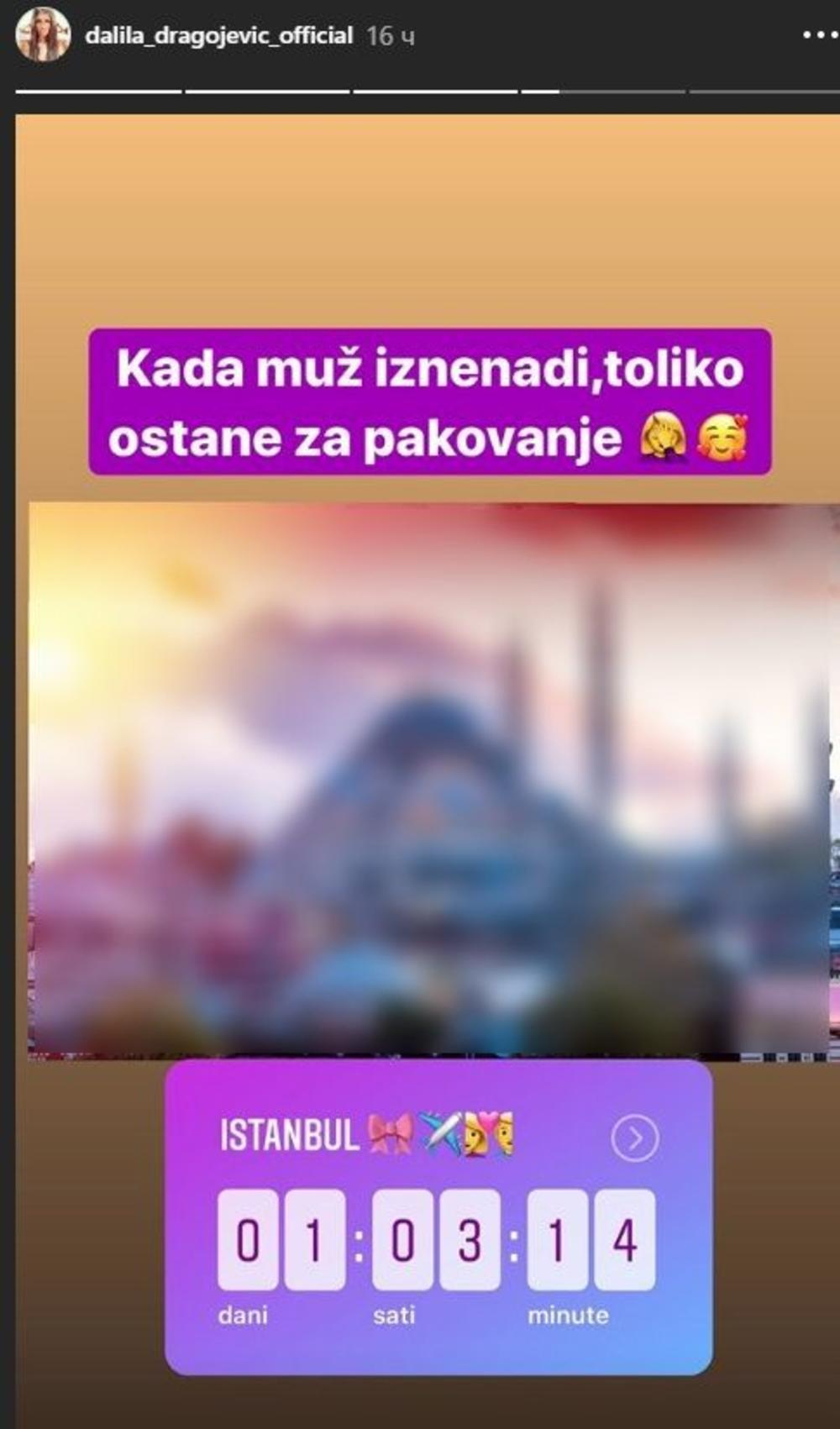 "Kada muž iznenadi, toliko ostane za pakovanje", poručila je ona kraj odbrojavanja do Istanbula, gde se par uputio na Dejanovu inicijativu.