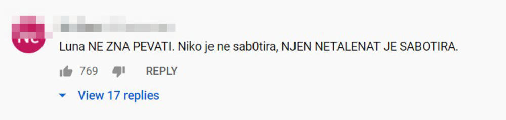 "Luna ne zna da peva, njen netalenat je sabotira", samo je jedan od negativnih komentara na Jutjubu.
