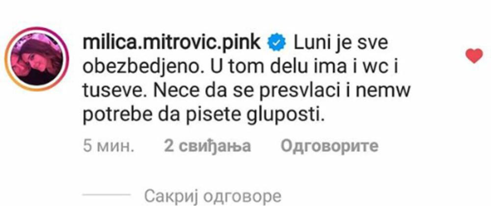 – Luni je sve obezbeđeno. U tom delu ima i WC i tuševe. Neće da se presvlači i nema potrebe da pišete gluposti – reagovala je Milica Mitrović na jednu od prozivki.