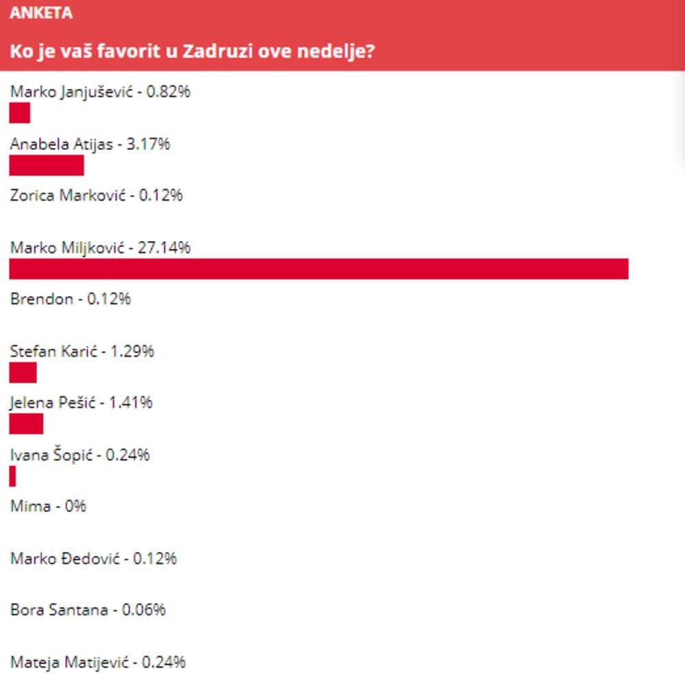 Anketa je trajala do danas iz razloga što su upravo večeras u Zadruzi nominacije i neko će dobiti vašu najmanju podršku.