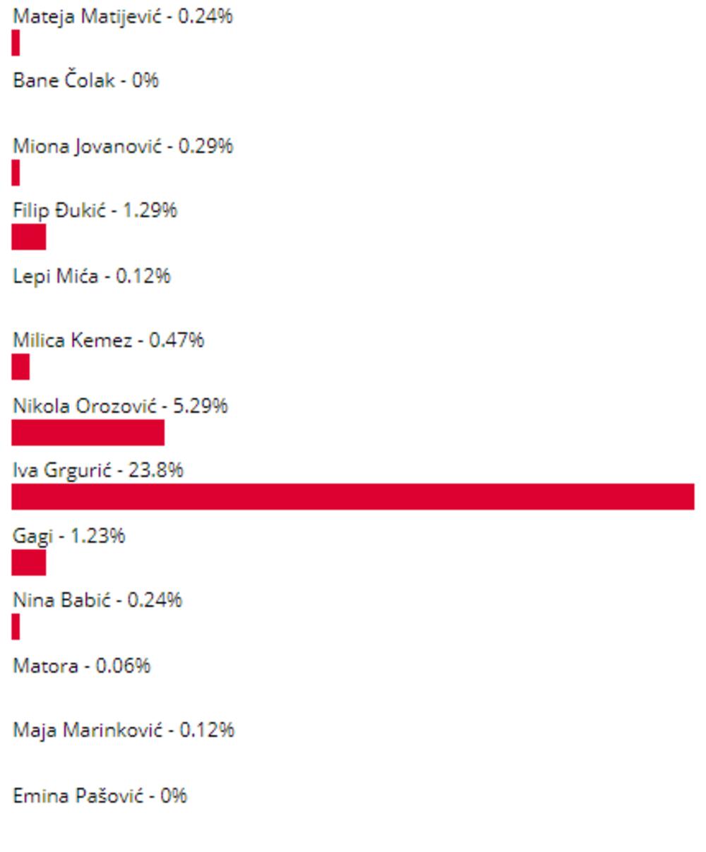 Ovoga puta, kao i prošlog, izdvojićemo TOP 5 učesnika sa najmanjim i najvećim brojem glasova.
