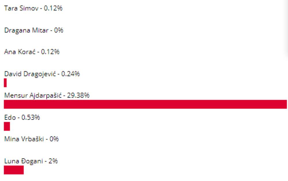 Kao i prošle nedelje, na prvom mestu našao se ponovo Mensur Ajdarpašić koji je osvojio 29.4% vaših glasova.