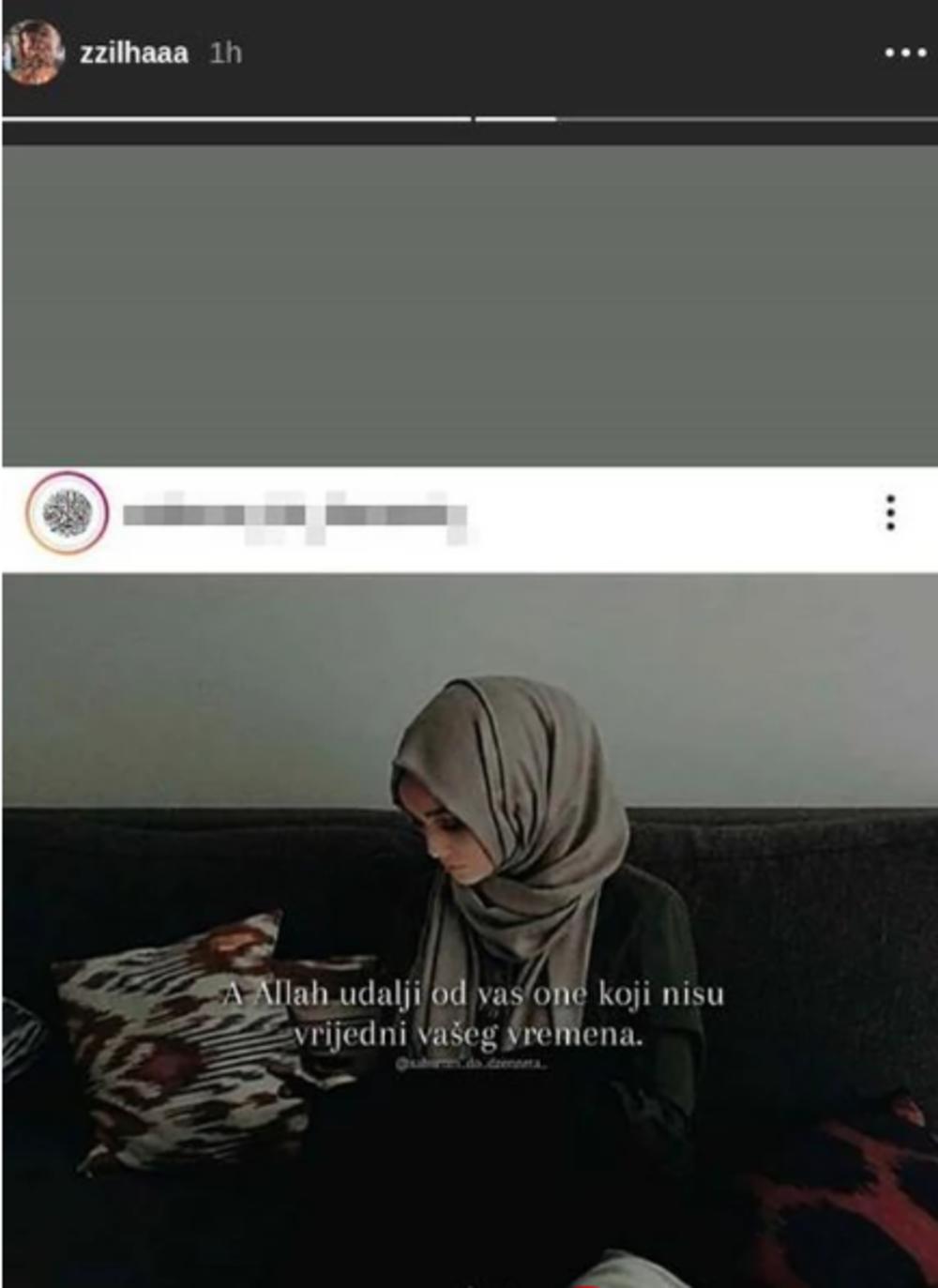 "A Alah udalji od vas one koji nisu vredni vašeg vremena", za koji mnogi smatraju da je upravo posvećen njenom i dalje zakonitom suprugu i da je upravo ovim gestom stavila svima do znanja da ne želi više da čuje za njega i da je nastavila sasvojim životom bez njega.
