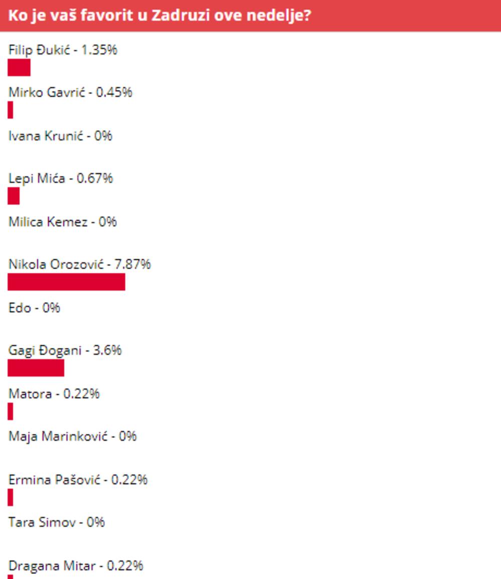 Još svega pet nedelja je ostalo do samog kraja Zadruge, a tim povodom otvorili smo u četvrtak anketu u kojoj smo vas pitali ko je vaš favorit.