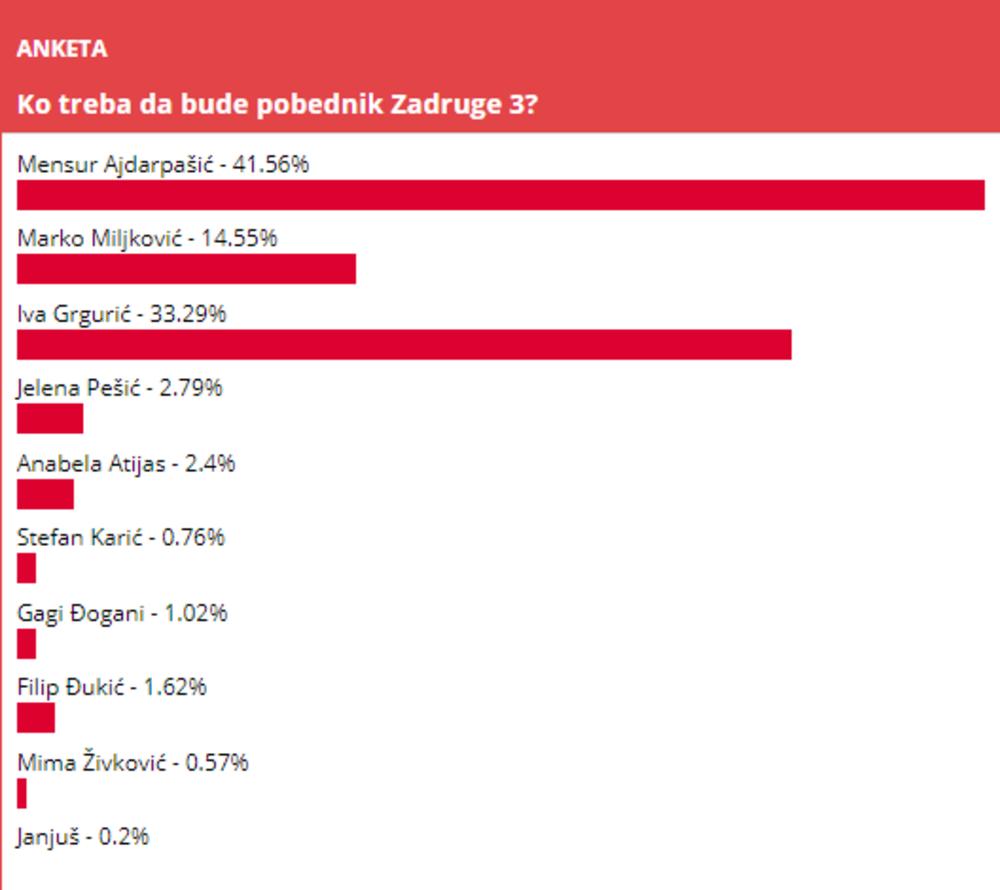Nas je zanimalo koga vi kao čitaoci našeg portala najviše podržavate, a danima unazad ste glasali za vašeg omiljenog zadrugara.