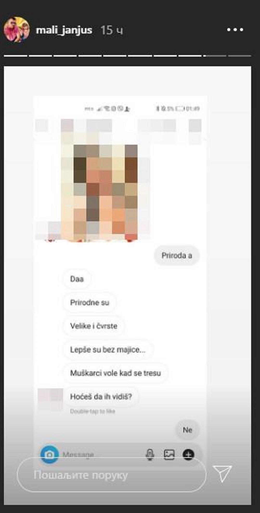 Janjuš se oglasio na društvenoj mreži te objavio s*ksi prepiske sa svog Instagram profila, gde komentariše grudi jedne devojke, a ona mu još žešće odgovara: