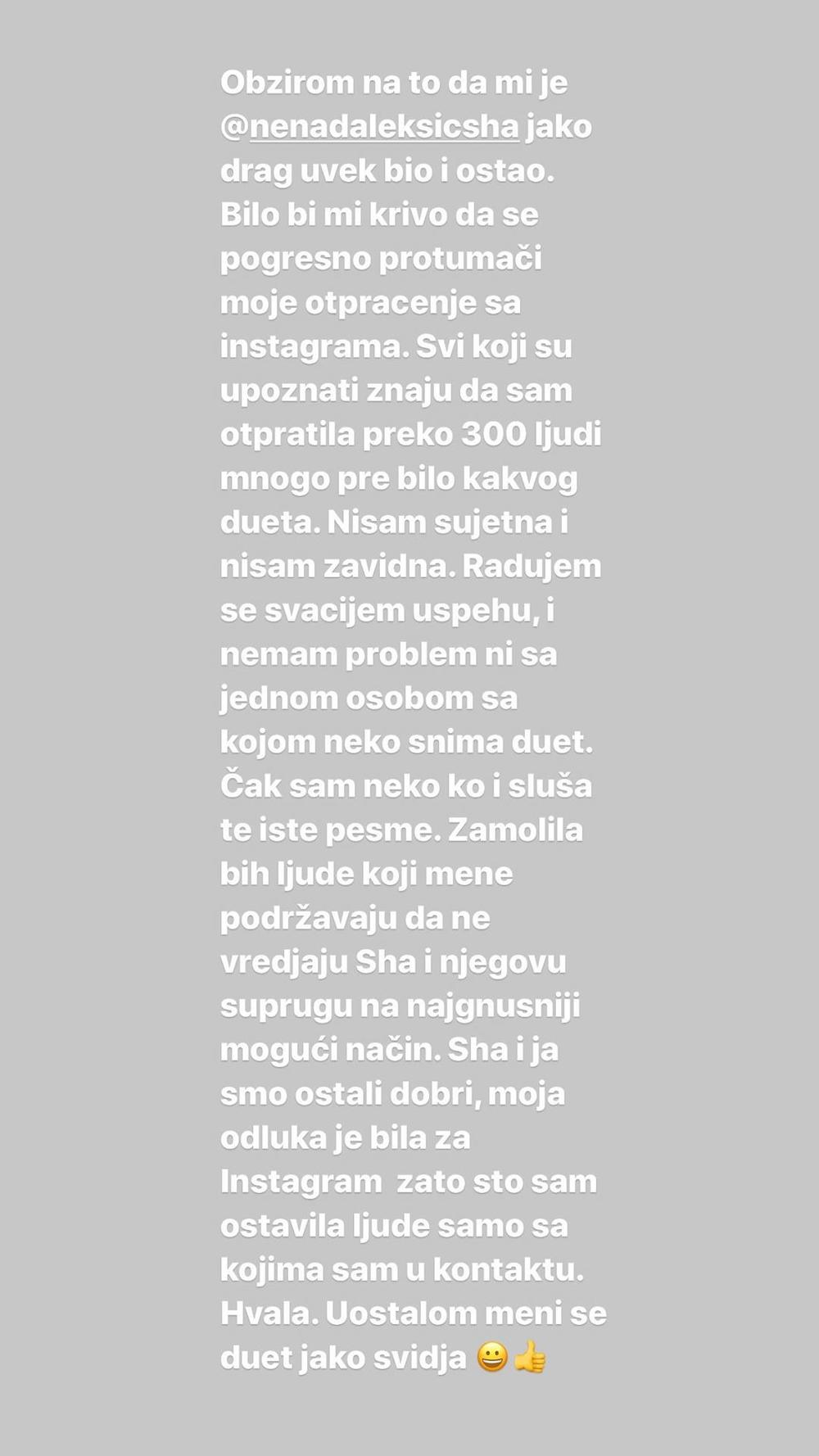 Da podsetimo, afera u vezi sa tim koga Luna prati je otvorena onog trenutka kada je otrpatila i bivšeg cimera iz "Zadruge" Nenada Aleksića, poznatijeg kao Ša. Mnogi su ovaj slučaj dovodili u vezu sa tim što je Ša snimio duet sa Kijom. Đoganijeva je pozvala svoje fanove da ne vređaju Aleksića, a nakon ove afere, interesantno je da je ona njega ponovo zapratila.