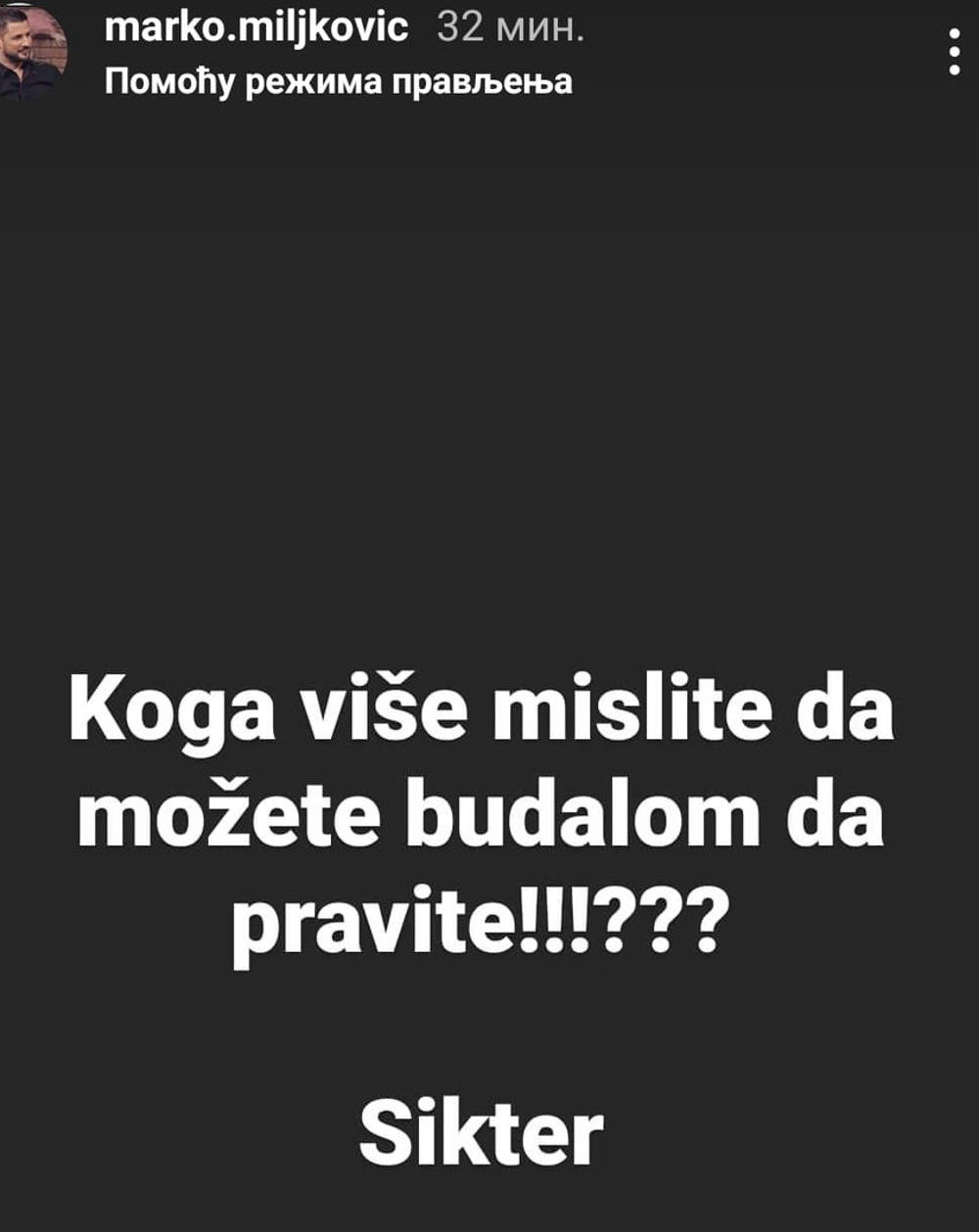 Ipak, Marko Miljković ne misli tako, sudeći po njegovom storiju u kojem je otvoreno napao ljude iz produkcije, da u prethodnoj sezoni navodno nisu vodili računa o zdravlju ukućana.