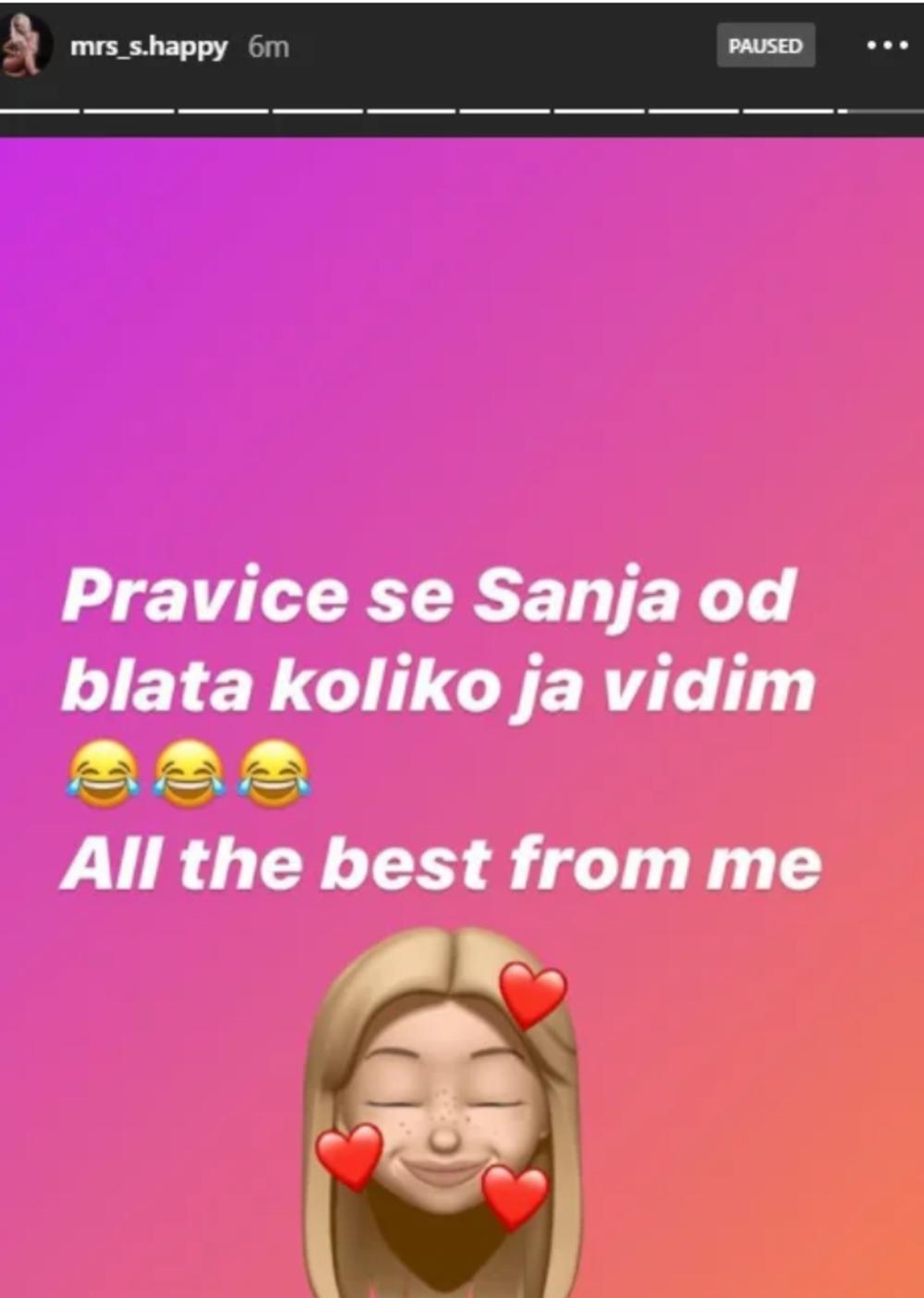 Praviće se Sanja od blata, koliko ja vidim. Sve najbolje želim - napisala je Stankovićeva, što se bez sumnje odnosilo upravo na Matoru i Žanu.