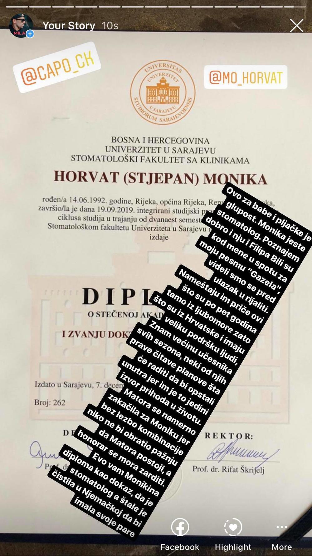 Sada je reper i novinar, Milan Popović, objasnio kako je to istina i u prilog tome fotografisao njenu diplomu.