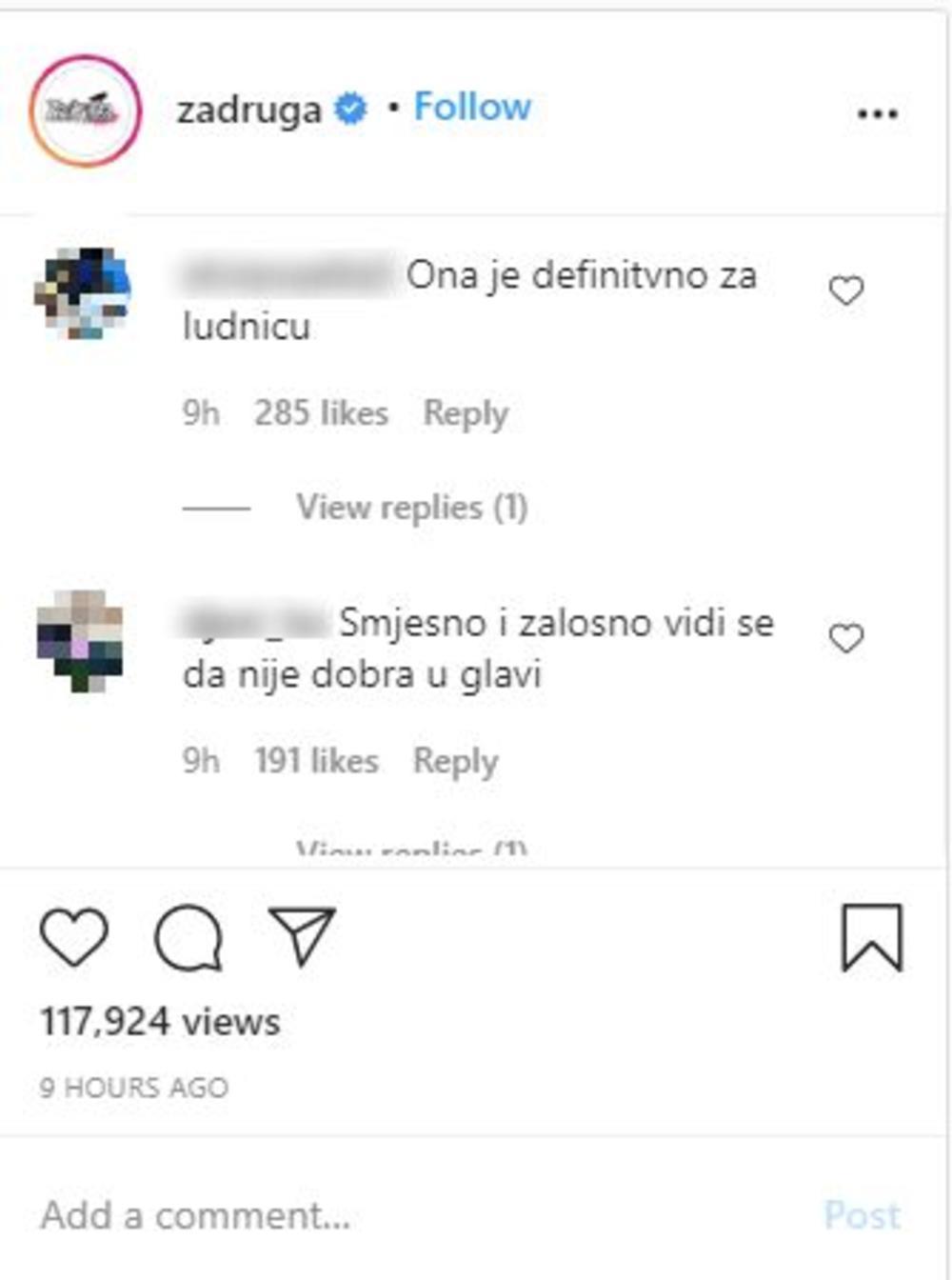 "Ona je definitvno za ludnicu", "Smješno i žalosno vidi se da nije dobra u glavi","samo su neki od komentara na pomenutoj društvenoj mreži.