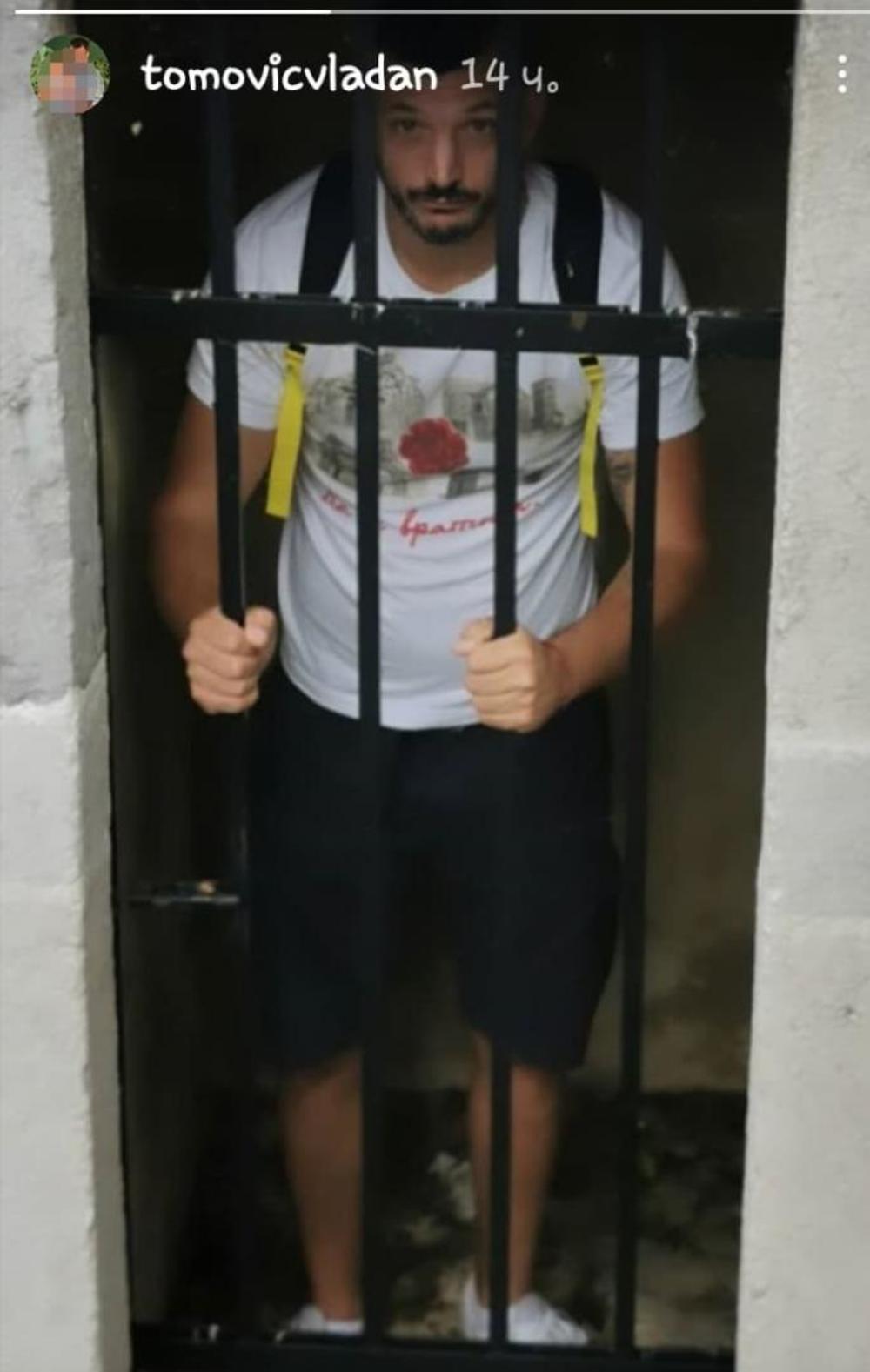 Naime, on se uslikao u tamnici, zatvoren iza rešetaka, držeči se sa šipke, sa tužnim pogledom, pozirao je za fotku, a ispod toga napisao "Da se vratim"