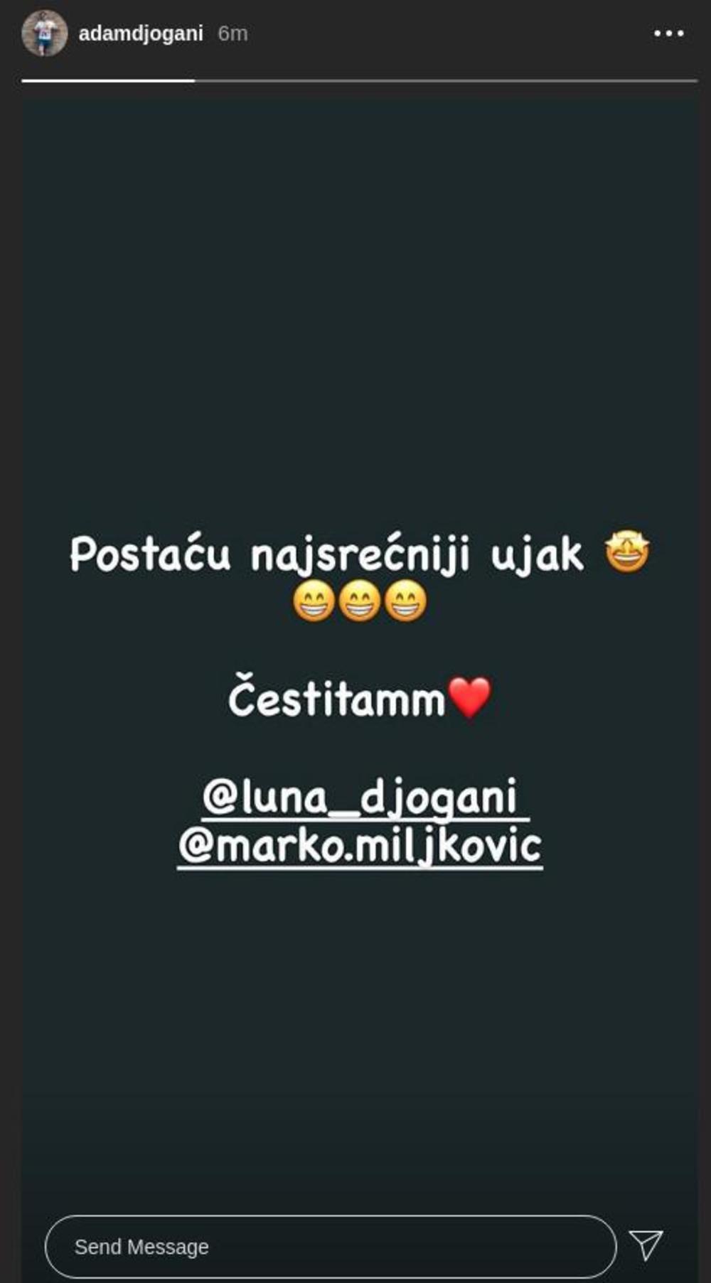 - Postaću najsrećniji ujak! Čestitam! - napisao je Adam i tagovao Lunu i Marka.