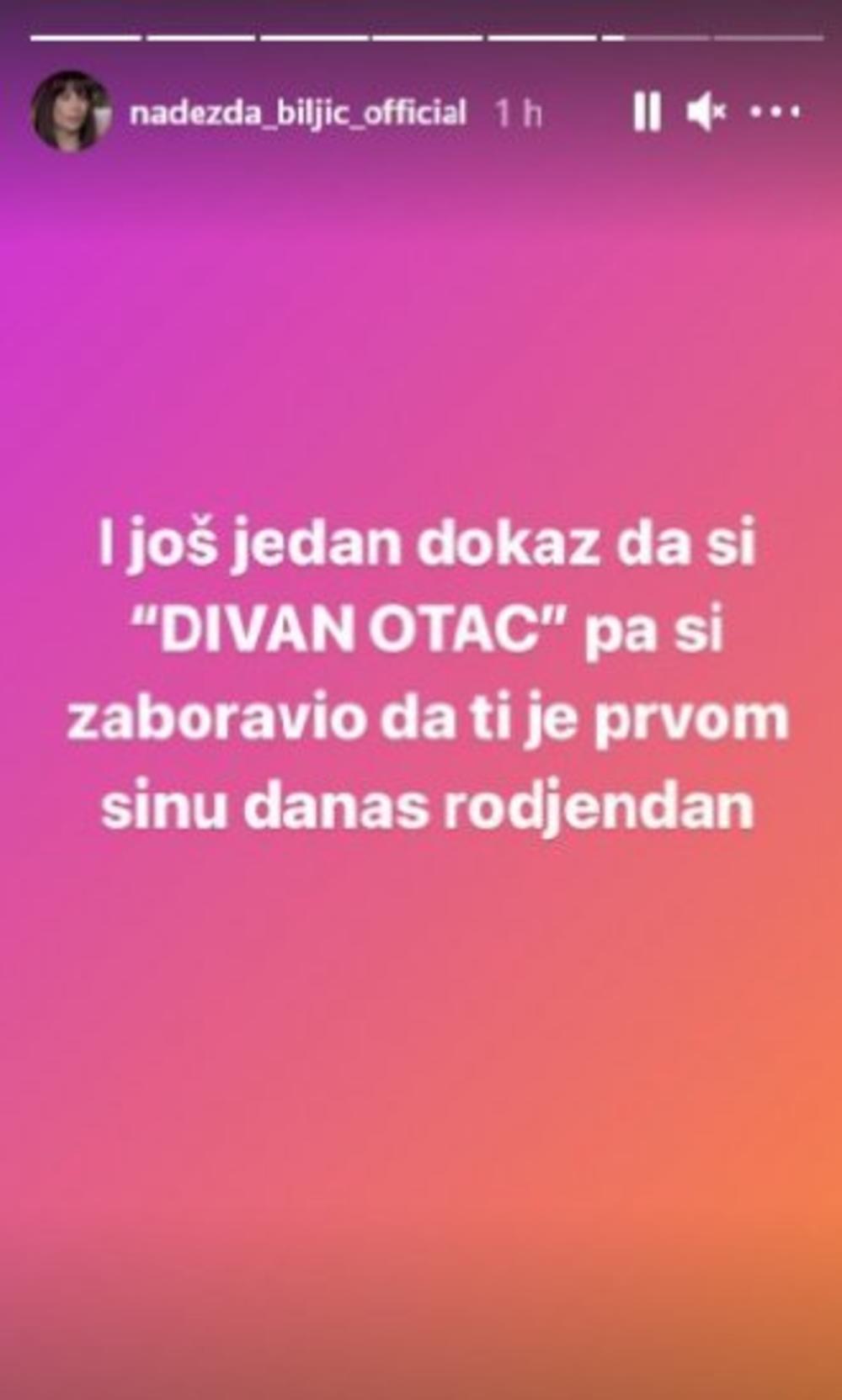 - I još jedan dokaz da si "divan otac", pa si zaboravio da ti je prvom sinu danas rođendan - napisala je pevačica.