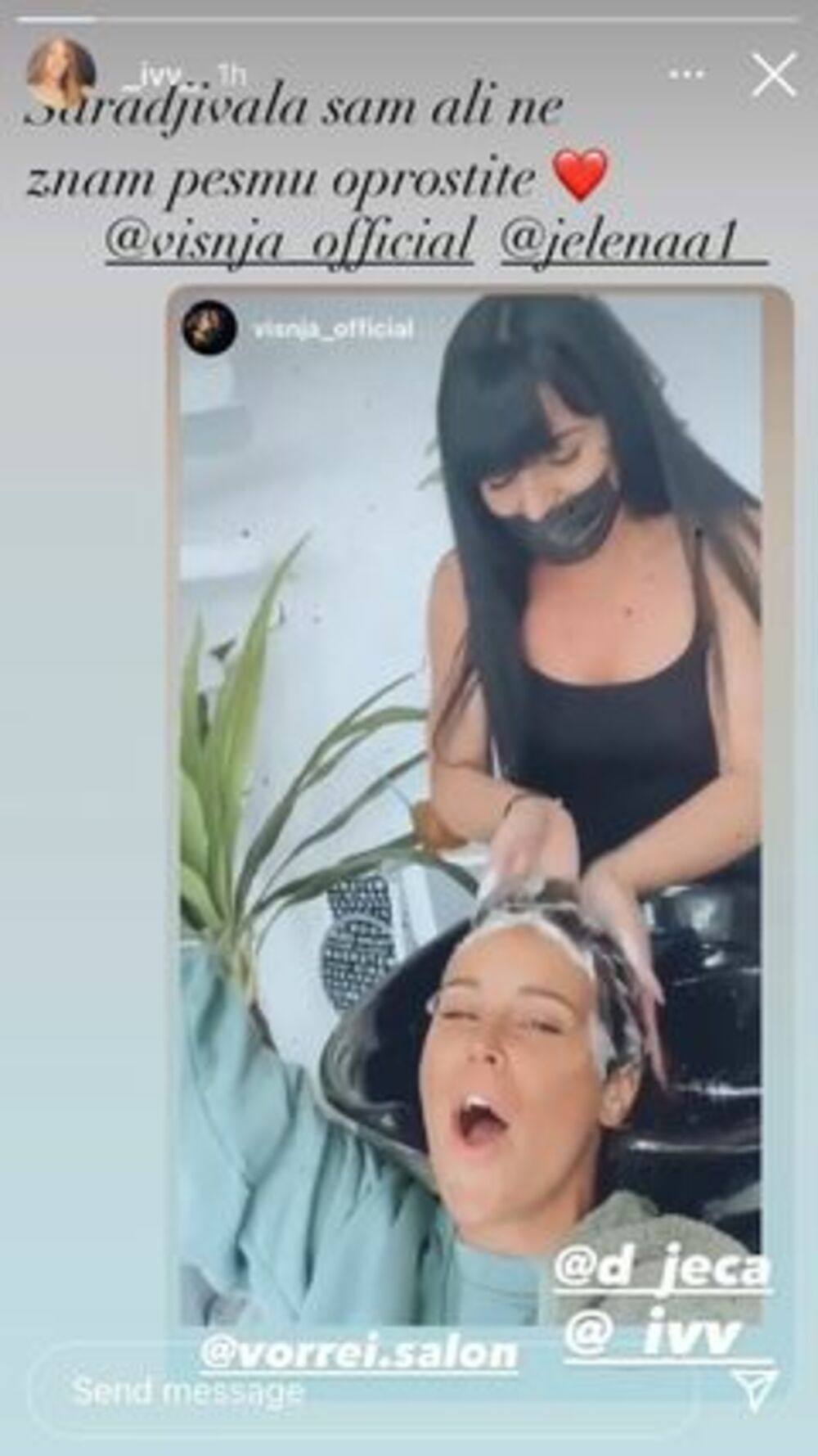 Ona se od tada nije oglašavala o dogadjaju koji je obeležio ovu sezonu rijalitija. Jedina prilika gde smo uspevali da vidimo Ivanu jeste njen instagram profil gde joj društvo uglavnom prave drugarice ili boravi u svom frizerskom salonu. Ovaj put, pevačica Višnja je na svom storiju podelila kako uživanu tretmanu uz pesmu Indire Radić “Poželela”.