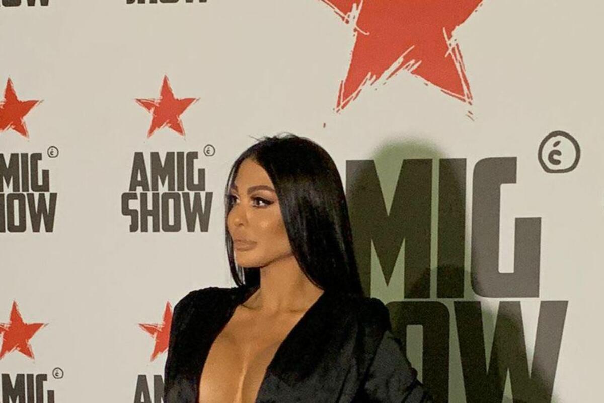Ona je ponosno pozirala pre emisije paparacima, a njene grudi su jedva stajale mirno ispod crne haljine koju je nosila.