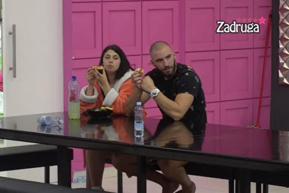 Za crnim stolom večeraju Milica Veselinović i Mensur Ajdarpašić, dok je na drugom kraju Viktorija Mitrović. Mensur i Viki su se našalili usred obroka, na šta je Milica burno reagovala i pogledala u kameru.