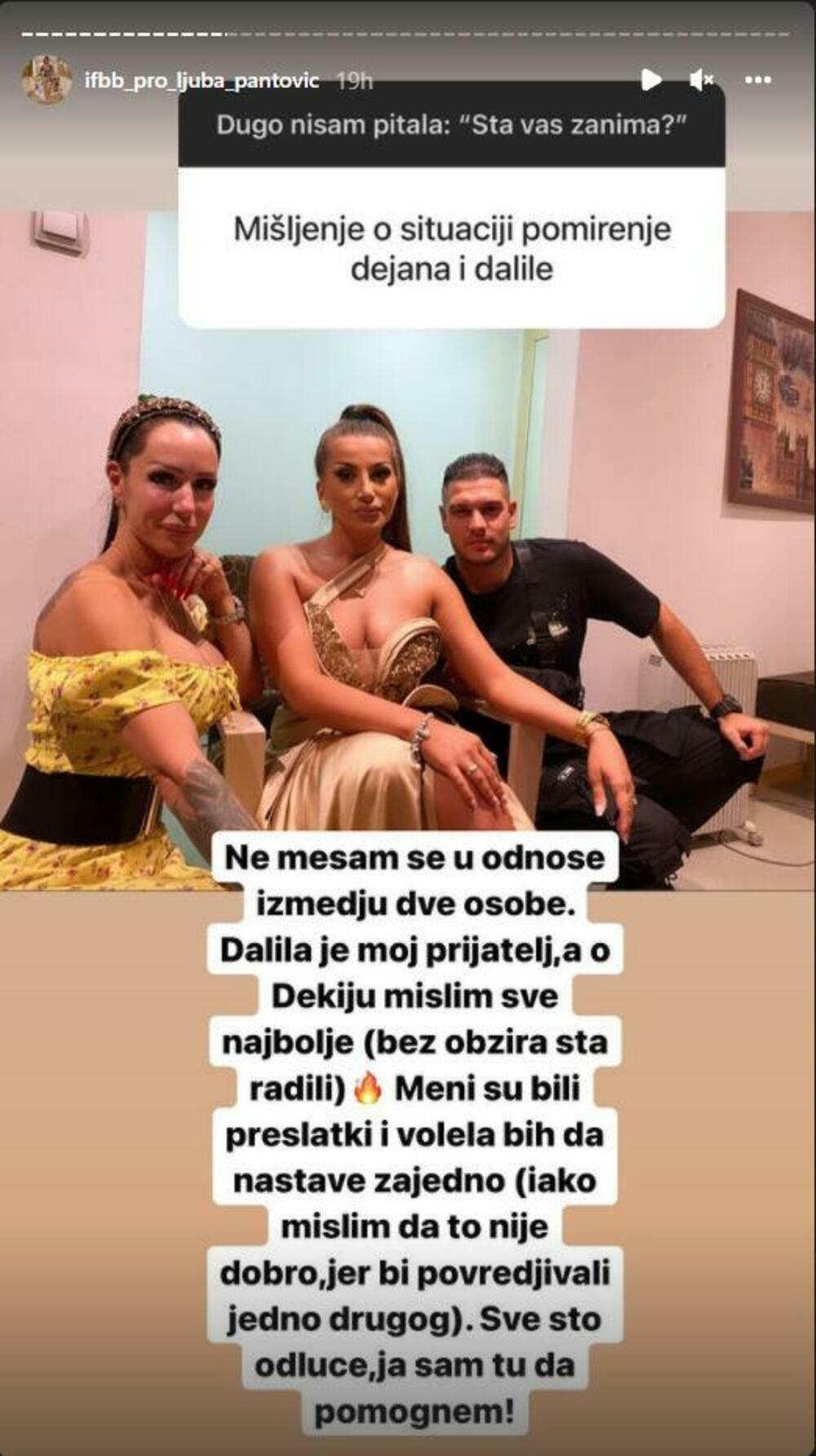 Kako je pomirenje Dalile i Dejana Dragojević izazvalo potpuni haos u javnosti, Ljuba je na Instagram profilu podelila kakvo mišljenje ima o tom činu, a tom prilikom je oplela po Maji Marinković.